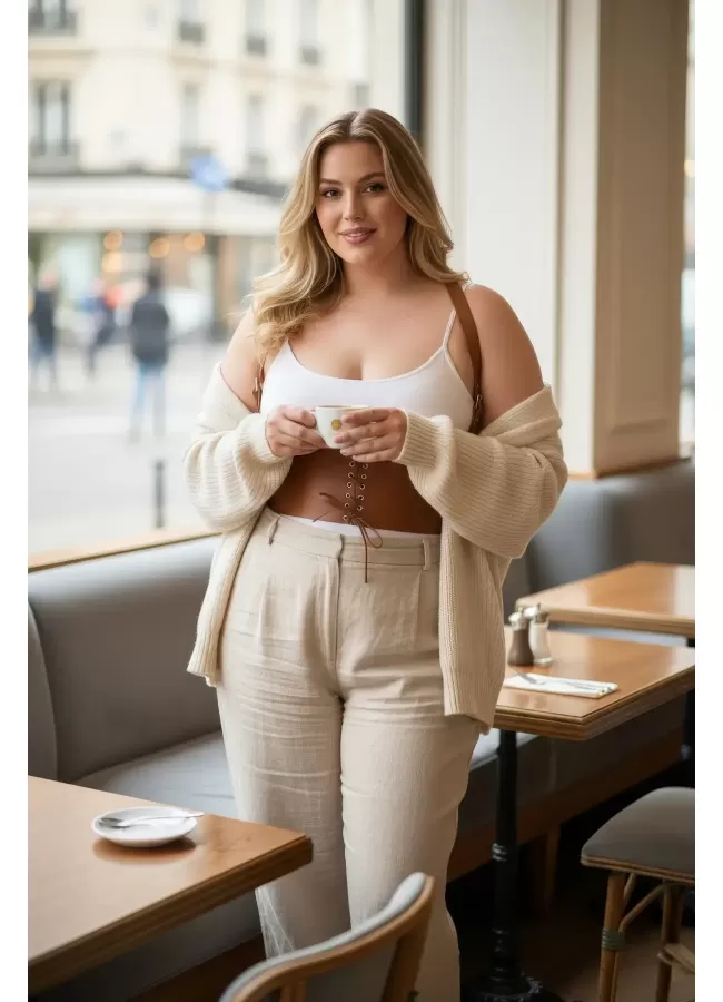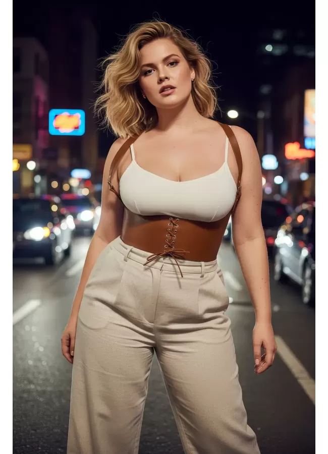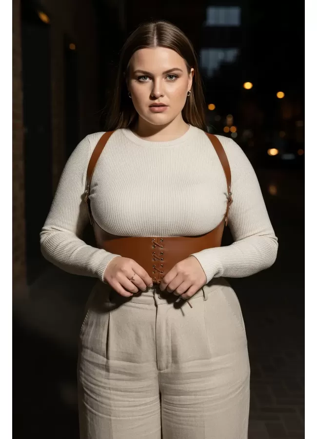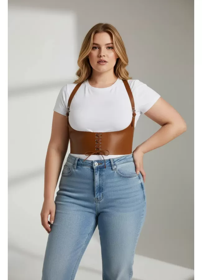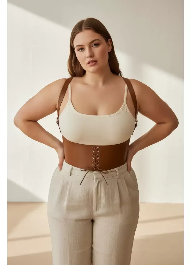 Büyük Beden Taba Kadın Korse Kemer Omuz Askılı Bağcık Detaylı - APFT1429