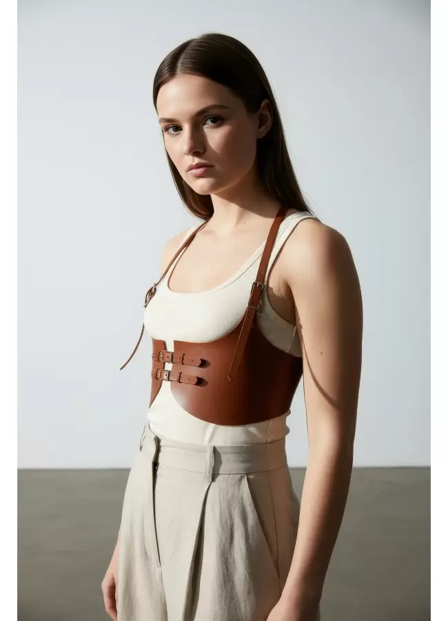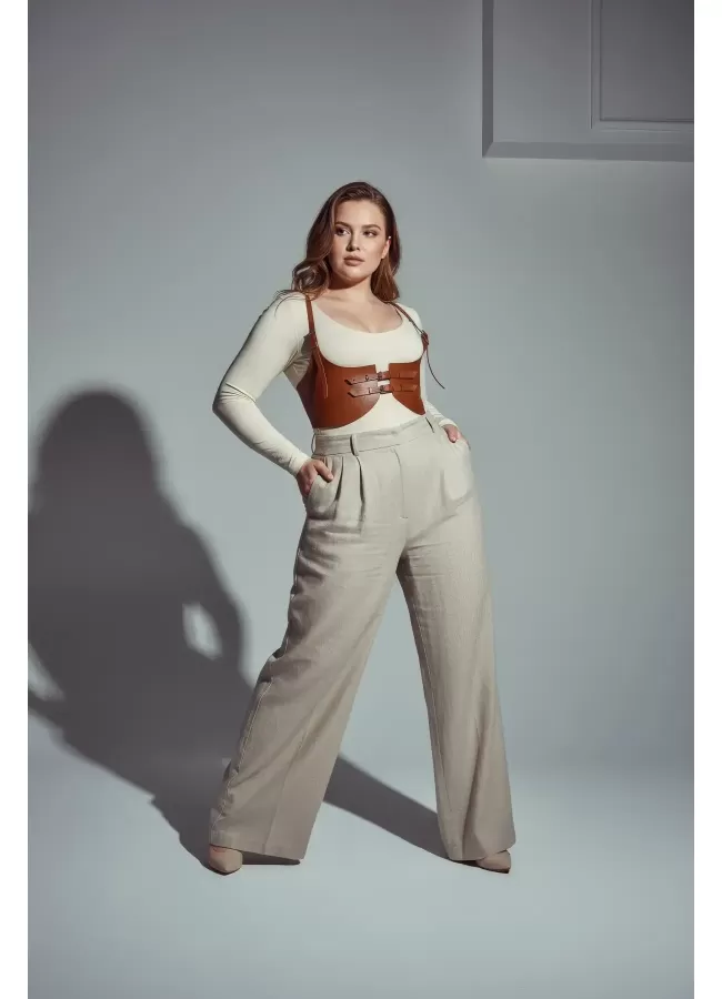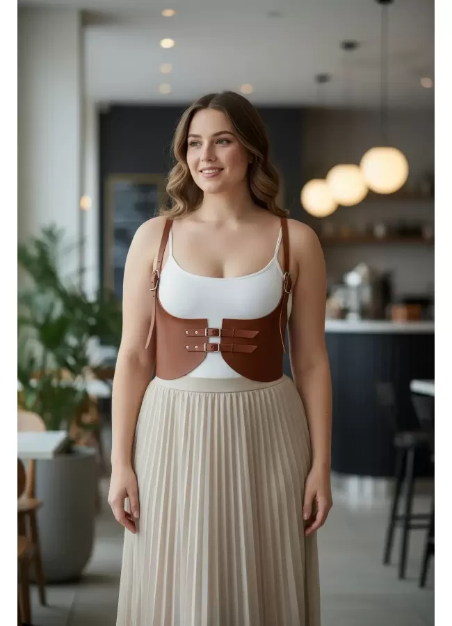 Büyük Beden Taba Kadın Korse Kemer Omuz Askılı Bağcık Detaylı - APFT1429