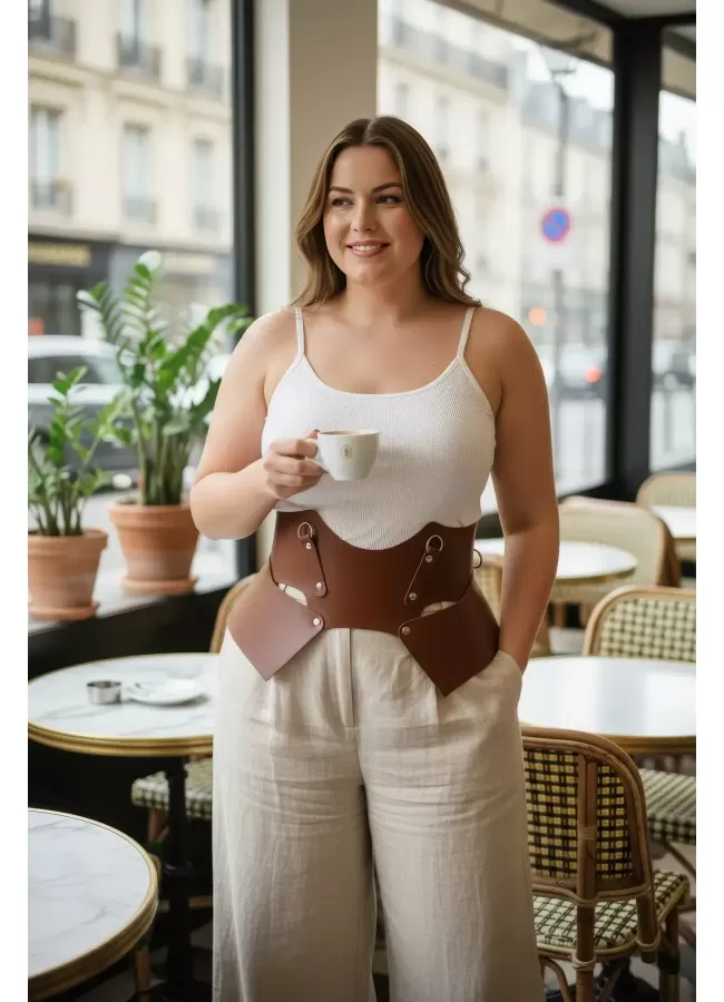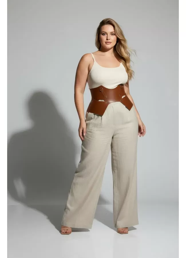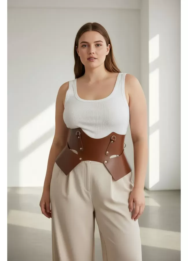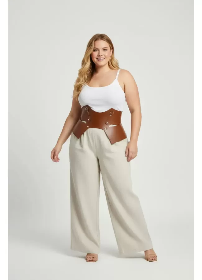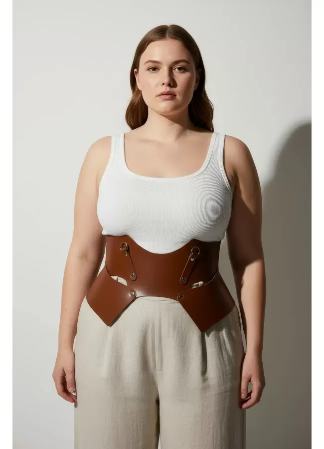 Büyük Beden Taba Kadın Korse Kemer Omuz Askılı Bağcık Detaylı - APFT1429