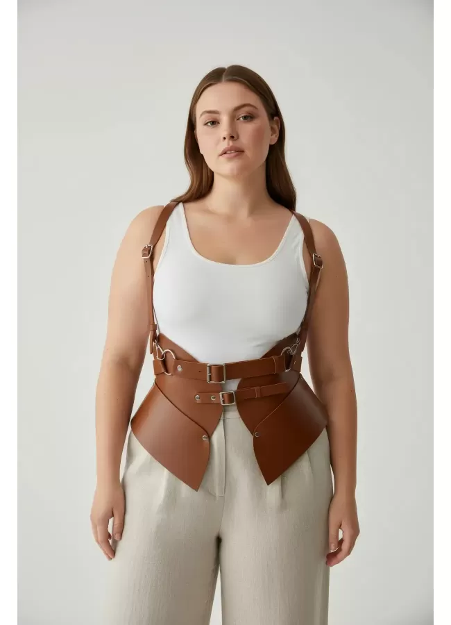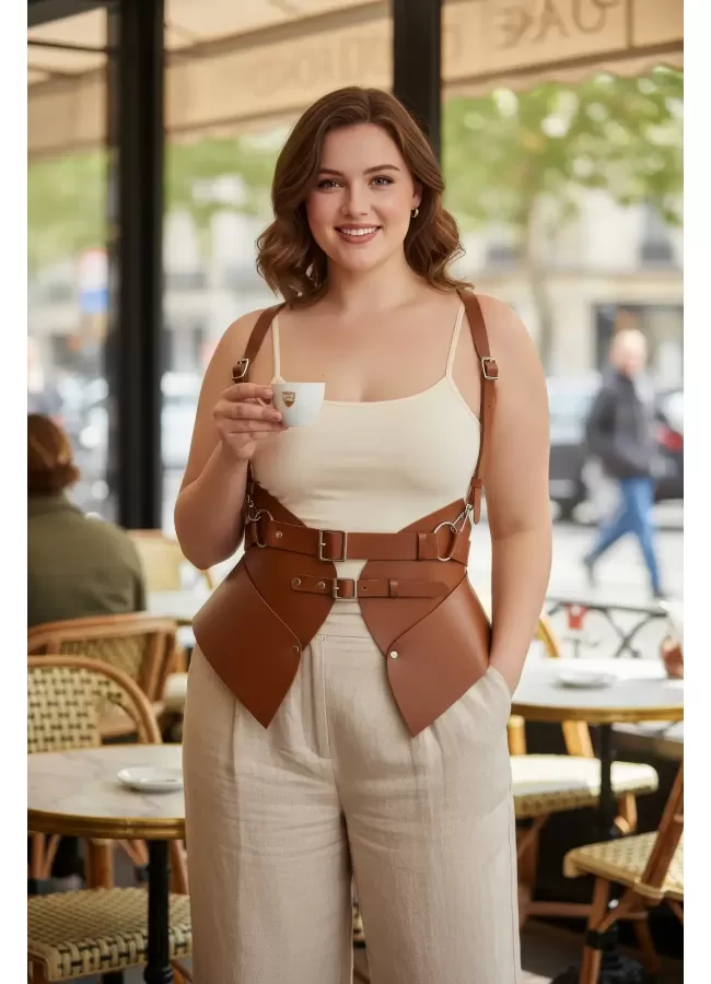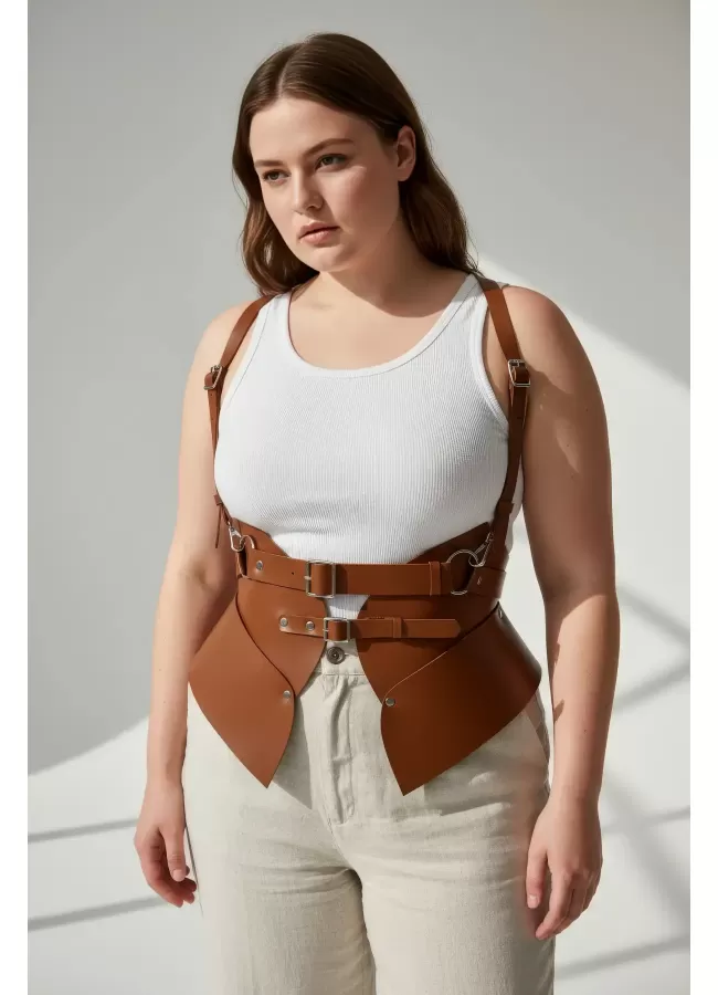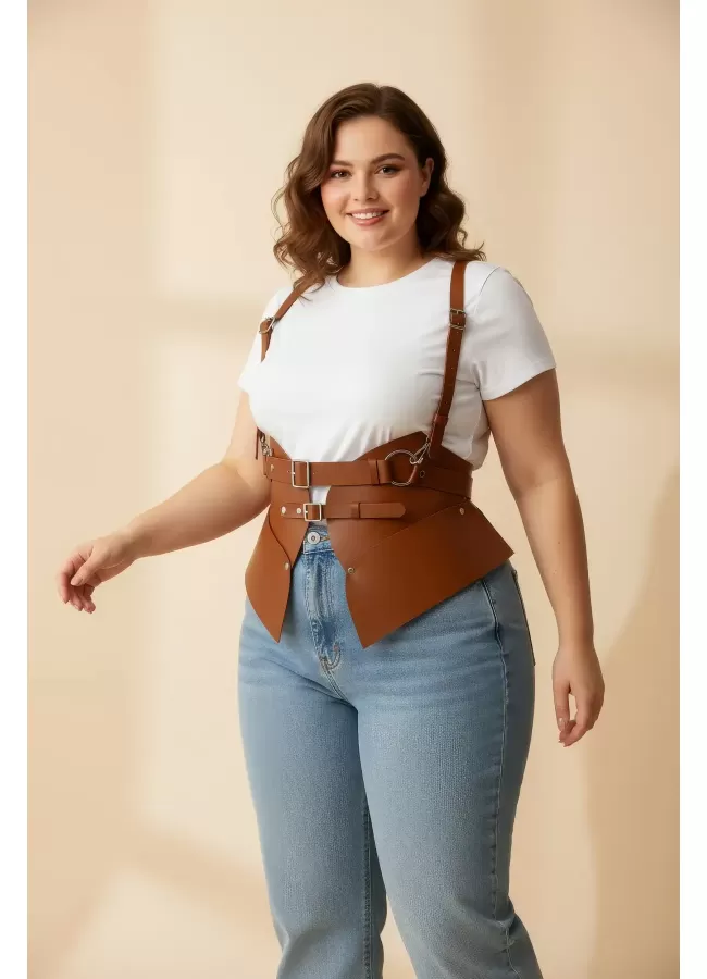 Büyük Beden Taba Kadın Korse Kemer Omuz Askılı Bağcık Detaylı - APFT1429
