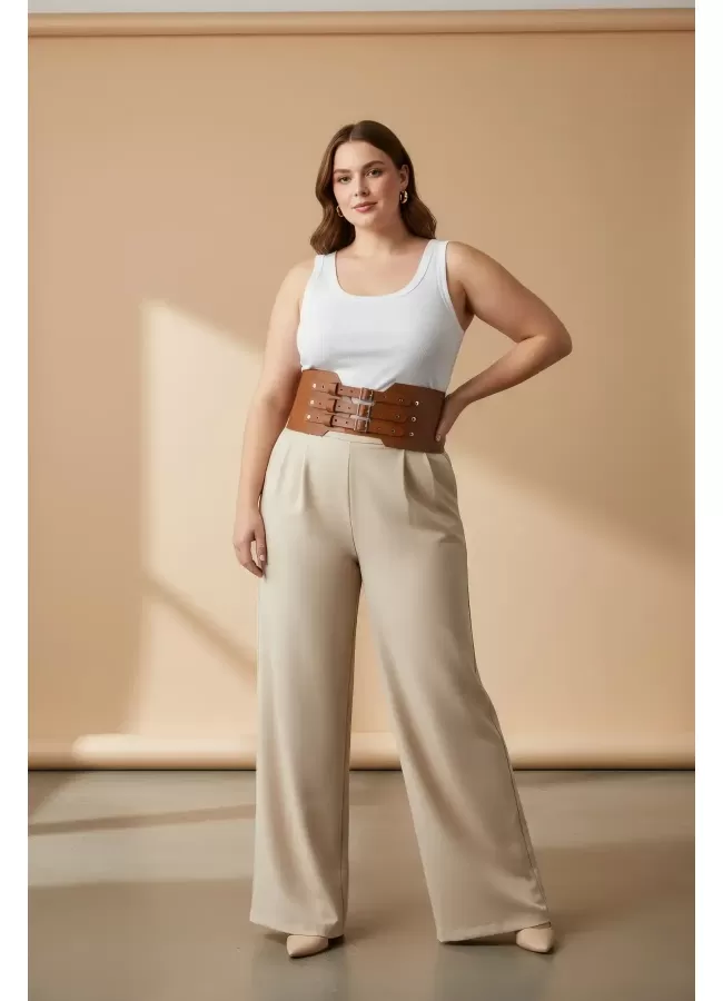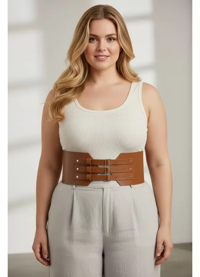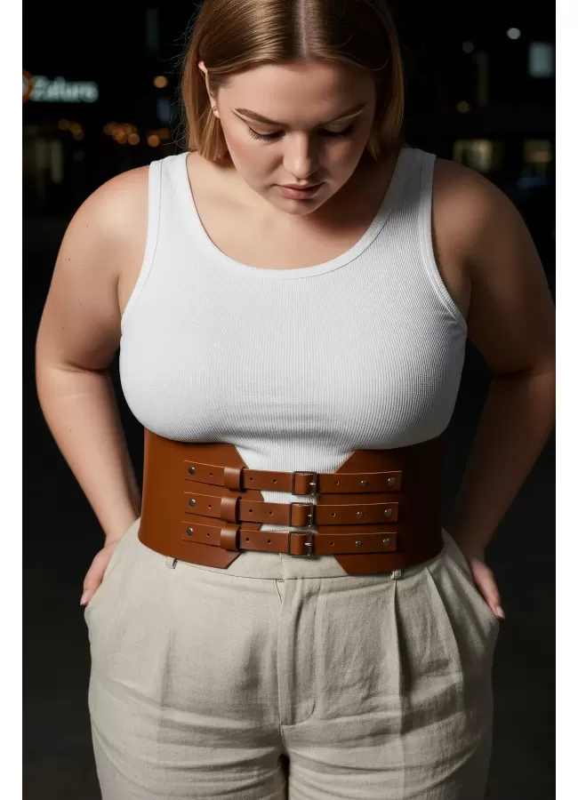 Büyük Beden Taba Kadın Korse Kemer Omuz Askılı Bağcık Detaylı - APFT1429