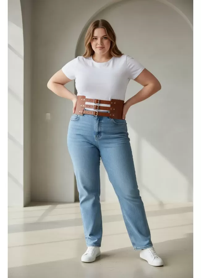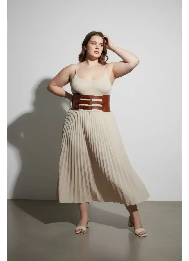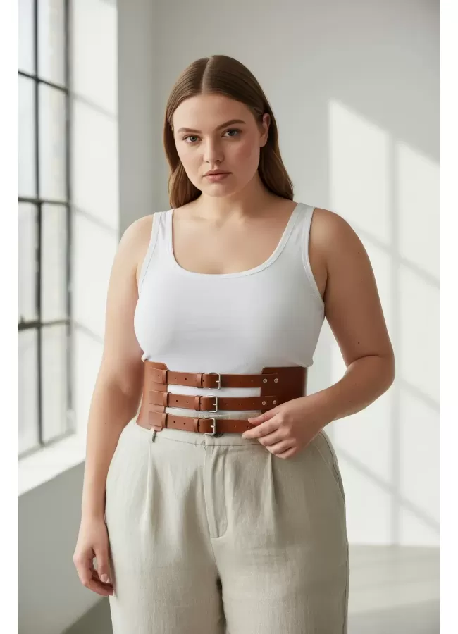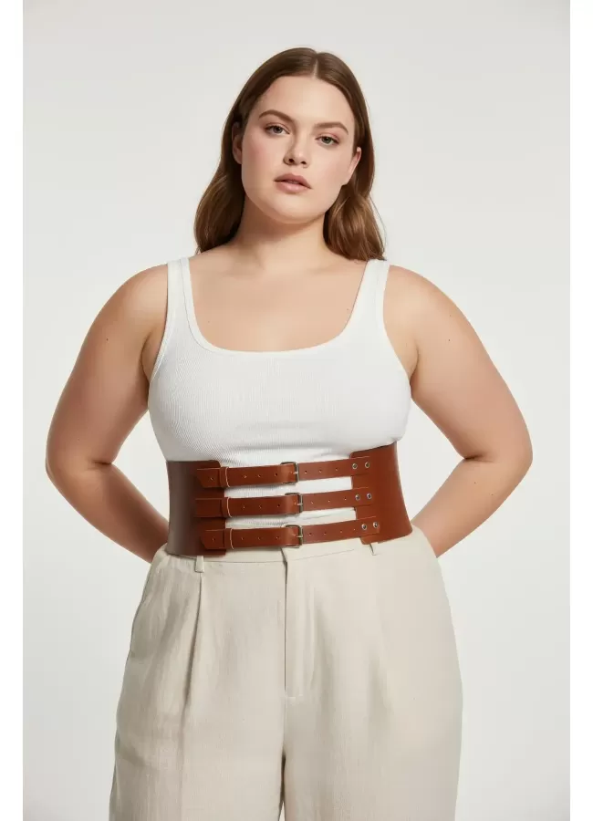Büyük Beden Taba Kadın Korse Kemer Omuz Askılı Bağcık Detaylı - APFT1429