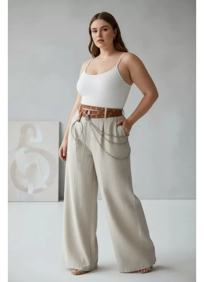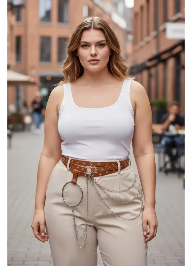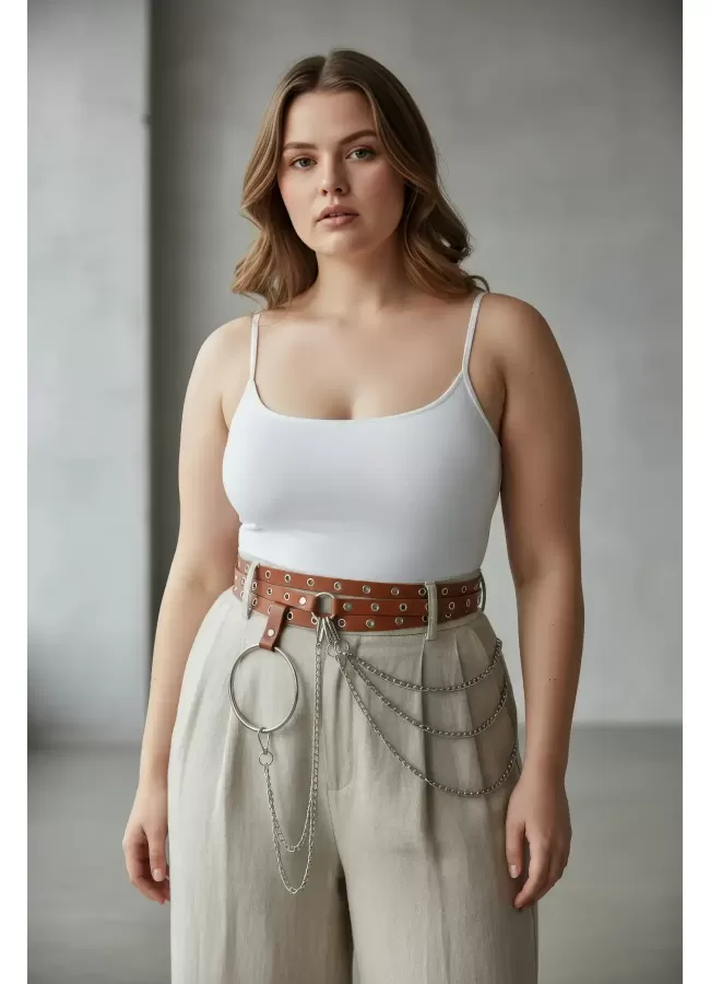 Büyük Beden Taba Kadın Korse Kemer Omuz Askılı Bağcık Detaylı - APFT1429