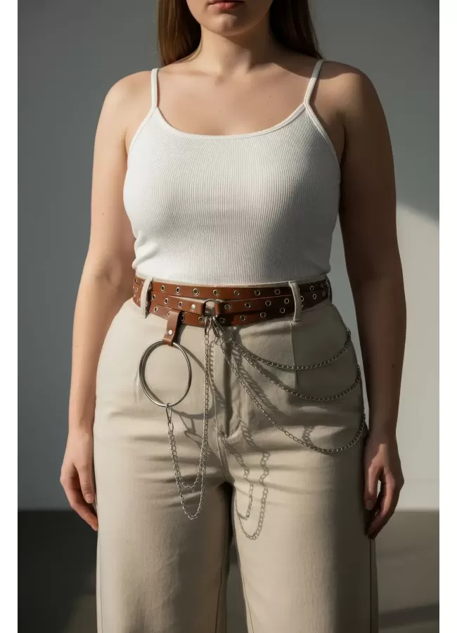 Büyük Beden Kırmızı Kadın Kemer Deri Harness Zincir Detaylı Vücut Aksesuarı - APFT9