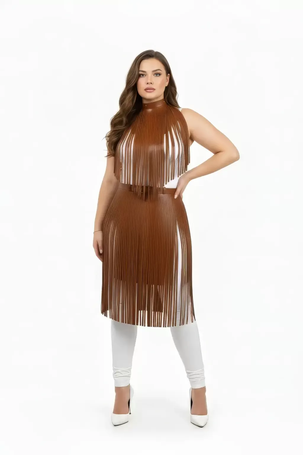 Büyük Beden Taba Püsküllü Deri Etek Kombin Tamamlayıcı Aksesuar - APFT997
