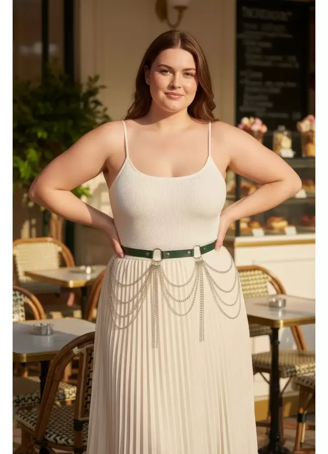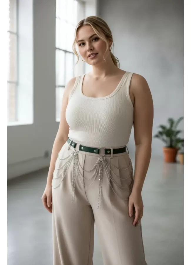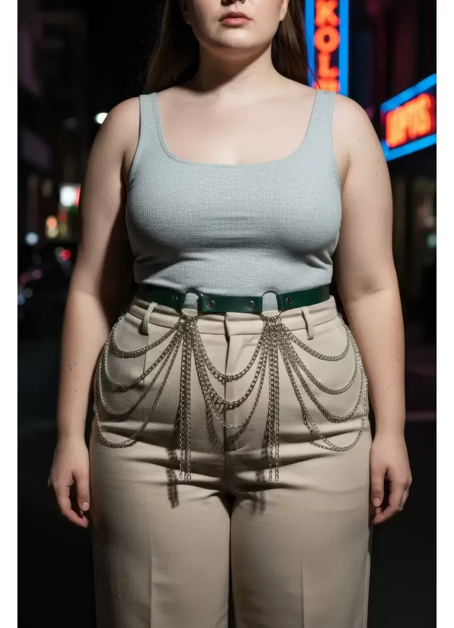 Büyük Beden Kırmızı Kadın Kemer Deri Harness Zincir Detaylı Vücut Aksesuarı - APFT9