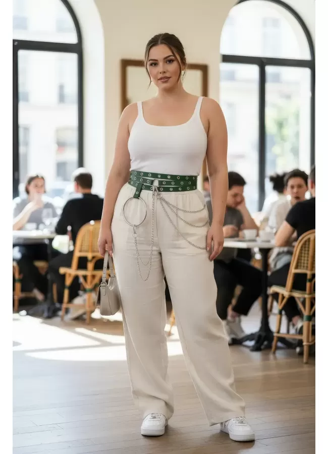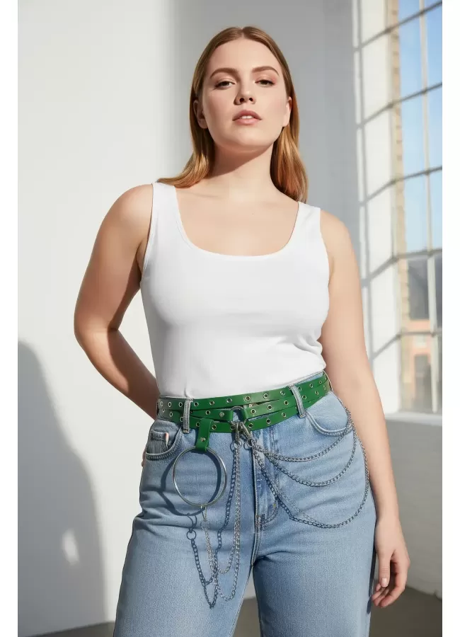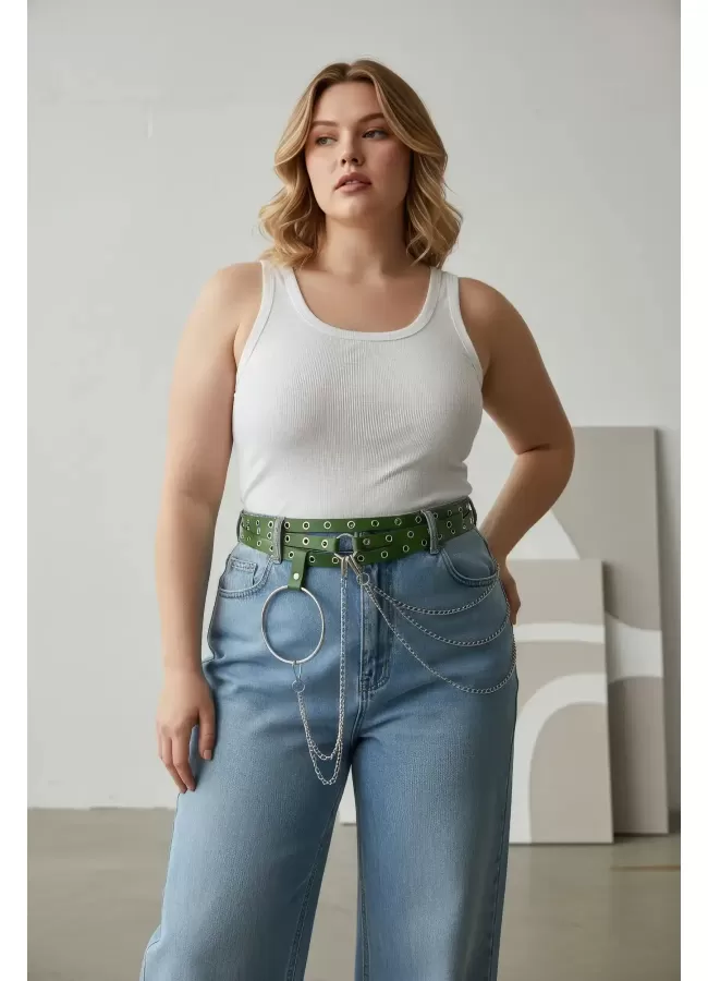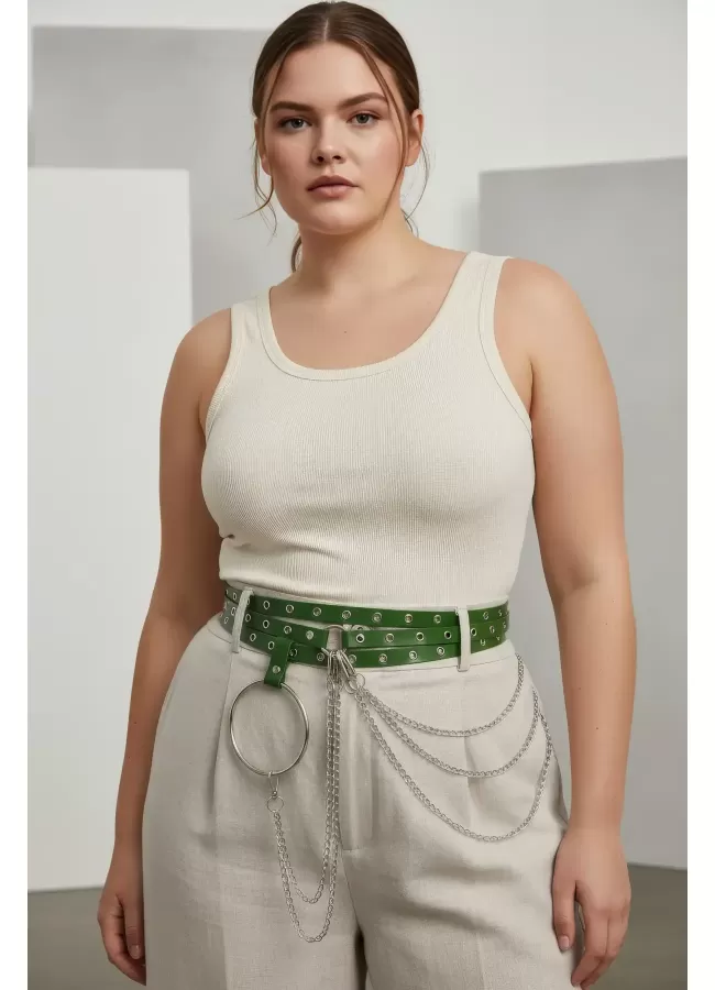 Büyük Beden Kırmızı Kadın Kemer Deri Harness Zincir Detaylı Vücut Aksesuarı - APFT9