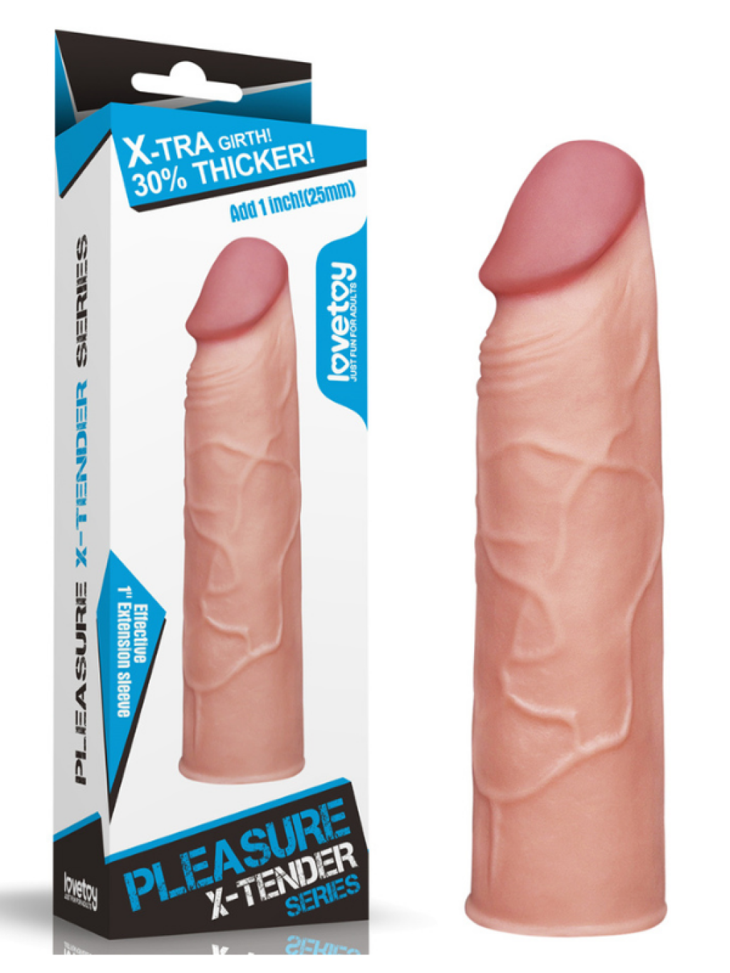 Love Toy Pleasure X-tender, hem içte hem dışta gerçekçi ve otantik hisler yaratan inanılmaz doğal bir yapıya sahiptir. Boyda ekstra 1 inç ve çevrede %30 artış sunarak işi mükemmel şekilde yapar. Penis uzatıcısını gövdenizin üzerine takmayı çok seveceksiniz; son derece gerçekçi yumuşaklığı ve “kendi boyunuza göre kes” tasarımı sayesinde kişiye özel uyum ve maksimum kontrol sağlar.Vücut sıcaklığında kullanım için, uzatıcıyı kullanmadan önce ılık suda bekletin. Maksimum konfor ve zevk için, su bazlı kayganlaştırıcıyı oyuncağın iç ve dış yüzeylerine bolca uygulayın.Kullanımdan sonra uzatıcıyı ılık suyla temizleyin ve gerçek kalitesini korumak için yenileyici pudra ile tozlayın.Özelliklera. Boyda 1 inç, çevrede %30 artış sağlayan süper gerçekçi penis uzatma kılıfıb. Gerçekçi baş ve damar detayları, alıcıda duyumu artırırc. Sıcaklığa duyarlı, gerçekçi his veren malzemeden üretilmiştird. Toplam uzunluk: 6.8 inçe. İç uzunluk: 5.3 inç, Kanal çapı: 1.2 inç