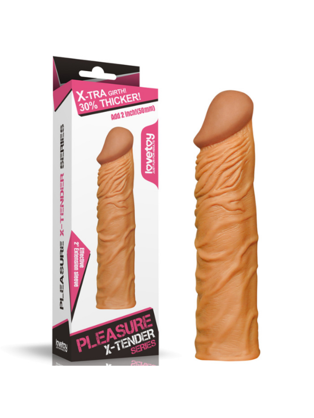 Love Toy Pleasure X-tender, hem içte hem dışta gerçekçi ve otantik hisler yaratan inanılmaz doğal bir yapıya sahiptir. Boyda ekstra 1 inç ve çevrede %30 artış sunarak işi kusursuz şekilde yapar. Penis uzatıcısını gövdenizin üzerine takmayı çok seveceksiniz; son derece gerçekçi yumuşaklığı ve “kendi boyunuza göre kes” tasarımı sayesinde kişiye özel uyum ve maksimum kontrol sağlar.Vücut sıcaklığında kullanım için, oyuncağı kullanmadan önce ılık suda bekletin. Maksimum konfor ve zevk için, su bazlı kayganlaştırıcıyı oyuncağın iç ve dış yüzeylerine bolca uygulayın.Kullanımdan sonra uzatıcıyı ılık suyla temizleyin ve gerçek kalitesini korumak için yenileyici pudra ile tozlayın.Özelliklera. Boyda 2 inç, çevrede %30 artış sağlayan süper gerçekçi penis uzatma kılıfıb. Gerçekçi baş ve damar detayları, alıcıda duyumu artırırc. Sıcaklığa duyarlı, gerçekçi his veren malzemeden üretilmiştird. Toplam uzunluk: 7.7 inçe. İç uzunluk: 5.5 inç, Kanal çapı: 1.2 inç