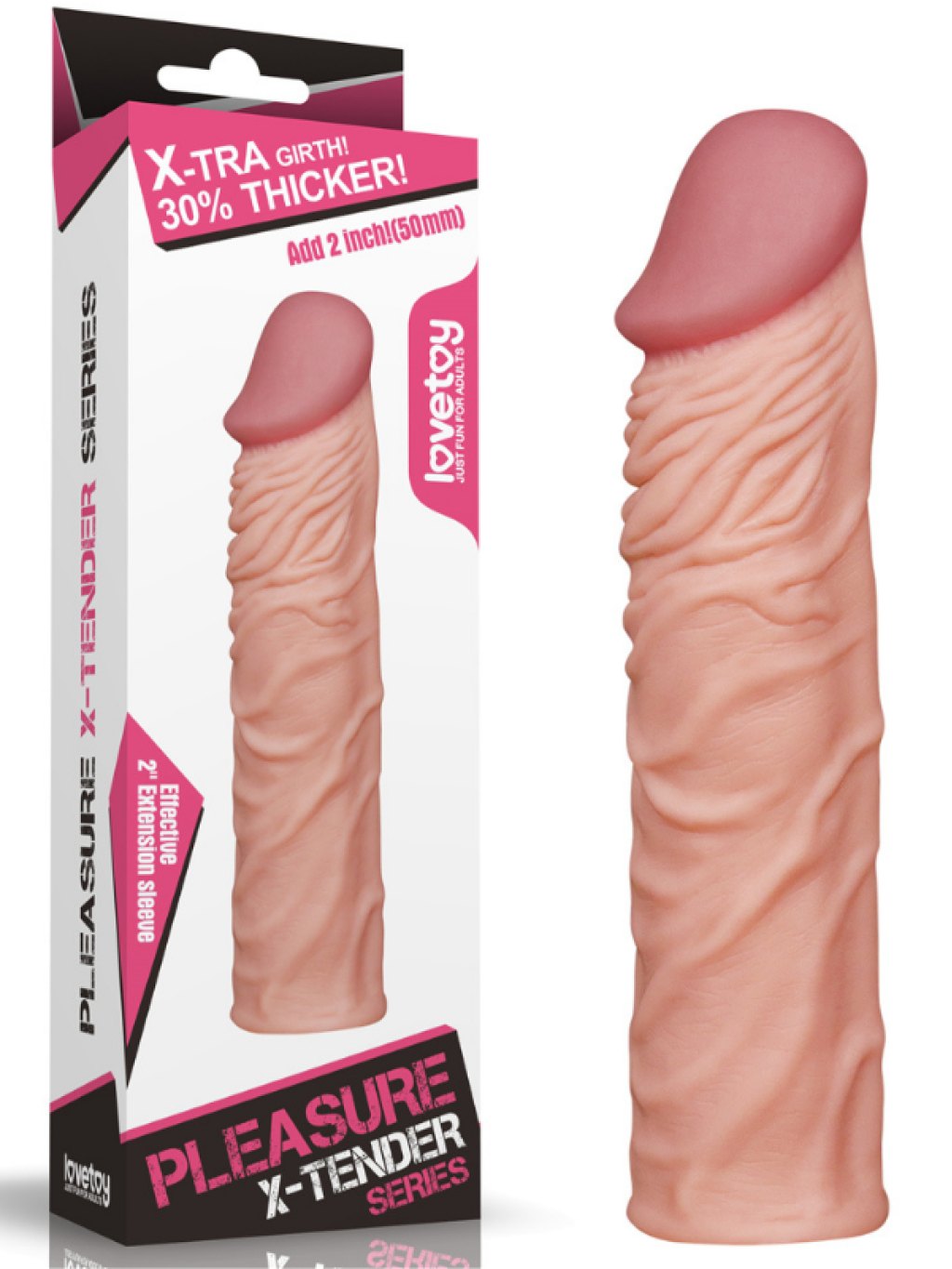 Love Toy Pleasure X-tender, hem içte hem dışta gerçekçi ve otantik hisler yaratan inanılmaz doğal bir yapıya sahiptir. Boyda ekstra 1 inç ve çevrede %30 artış sunarak işi kusursuz şekilde yapar. Penis uzatıcısını gövdenizin üzerine takmayı çok seveceksiniz; son derece gerçekçi yumuşaklığı ve “kendi boyunuza göre kes” tasarımı sayesinde kişiye özel uyum ve maksimum kontrol sağlar.Vücut sıcaklığında kullanım için, oyuncağı kullanmadan önce ılık suda bekletin. Maksimum konfor ve zevk için, su bazlı kayganlaştırıcıyı oyuncağın iç ve dış yüzeylerine bolca uygulayın.Kullanımdan sonra uzatıcıyı ılık suyla temizleyin ve gerçek kalitesini korumak için yenileyici pudra ile tozlayın.Özelliklera. Boyda 2 inç, çevrede %30 artış sağlayan süper gerçekçi penis uzatma kılıfıb. Gerçekçi baş ve damar detayları, alıcıda duyumu artırırc. Sıcaklığa duyarlı, gerçekçi his veren malzemeden üretilmiştird. Toplam uzunluk: 7.7 inçe. İç uzunluk: 5.5 inç, Kanal çapı: 1.2 inç