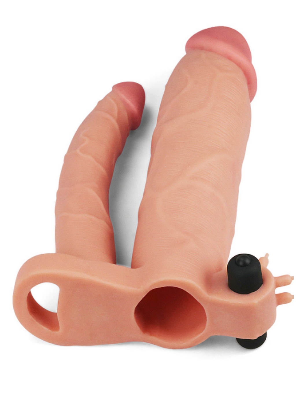 Vibrating Pleasure X-tender ile her iki taraf için de zevki doruğa çıkarın! Bu titreşimli uzatıcı kılıf, hem sizi daha kalın ve uzun gösterir hem de partneriniz için daha yoğun bir deneyim sunar. Skrotum halkası sıkıca yerleştirilerek boşalma süresi uzatılır, böylece şimdiye kadar yaşadığınız en patlayıcı orgazmlardan birini deneyimlemeniz mümkün olur.Gerçekçi dokuya sahip bu kılıf, penis ucunda 7.5 cm (3 inç) uzatma sunar ve çevresel olarak kalınlığınızı %50 artırır. Ultra esnek materyali sayesinde çoğu bedene uyum sağlar ve süper yumuşak yapısıyla ikinci bir cilt gibi hissettirir — hatta belki daha iyi!Dış yüzeyindeki damar dokusu ve belirgin baş yapısı, partnerinizin doğal hislerle yoğun bir haz almasını sağlar. İç kısmındaki dar kanal ise ereksiyon halindeki penisi sararak maksimum temas ve uyarım sunar.Ayrıca anal stimülasyon için ince ve kademeli bir dildo da içerir. Böylece başkalarını dâhil etmeden çift yönlü penetrasyon deneyimi yaşayabilirsiniz. Gerçekçiliği artırmak için kullanımdan önce sıcak suya koyarak vücut sıcaklığına getirebilirsiniz.Bol miktarda su bazlı kayganlaştırıcı kullanmanız, hem konforu hem de hazzı artıracaktır.Öne Çıkan Özellikler3 inç (7.5 cm) ekstra uzunluk ve %50 kalınlık artışıGerçekçi damar dokusu ve belirgin baş yapısıVücut ısısına duyarlı, gerçek hissiyatlı malzemeÇift haz: Dahili anal dildo ile çift penetrasyonEkstra eğlence için titreşimli mini vibratör dahilEsnek yapısıyla çoğu bedene uyum sağlarBoyutlarKılıf Uzunluğu: 21.5 cm (8.5 inç)İç Uzunluk: 14.7 cm (5.8 inç)Kılıf Çapı: 5 cmAnal Dildo Uzunluğu: 17.2 cm (6.8 inç)Anal Dildo Çapı: 2.5 cm (1 inç)
