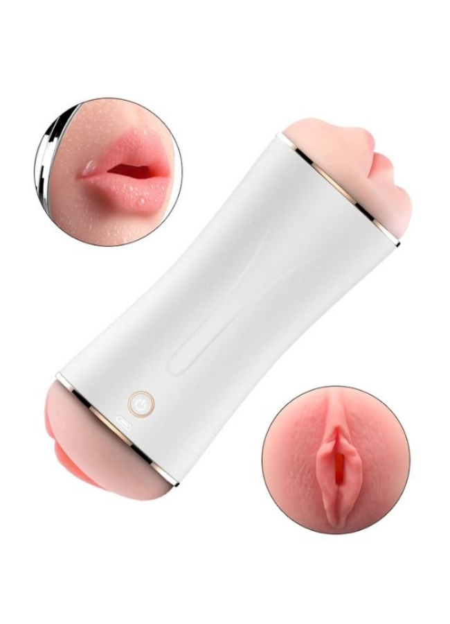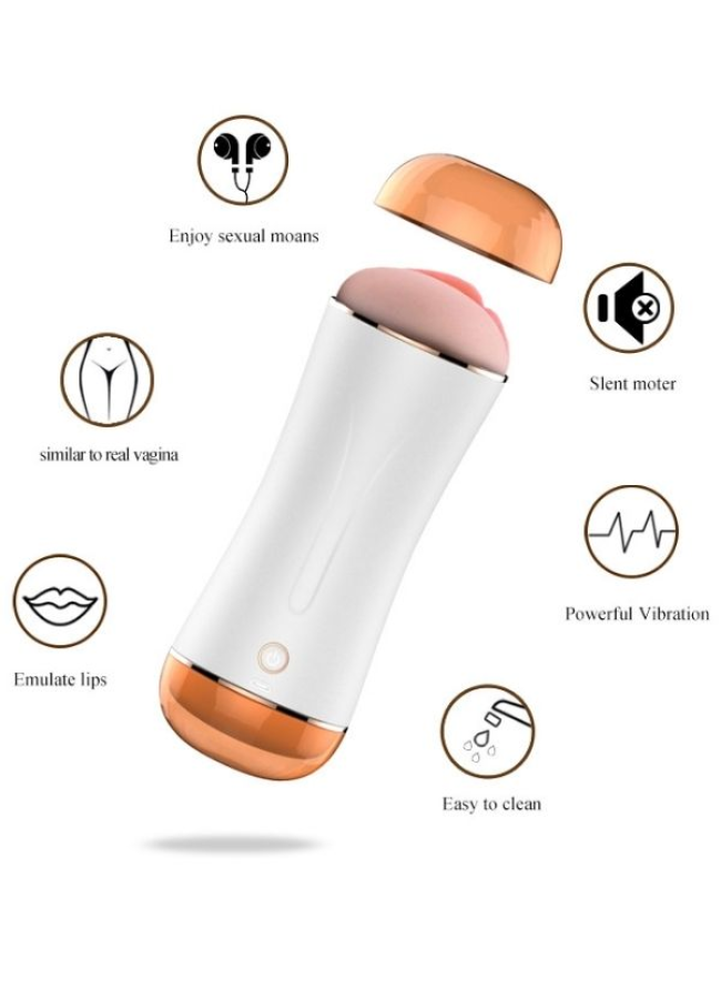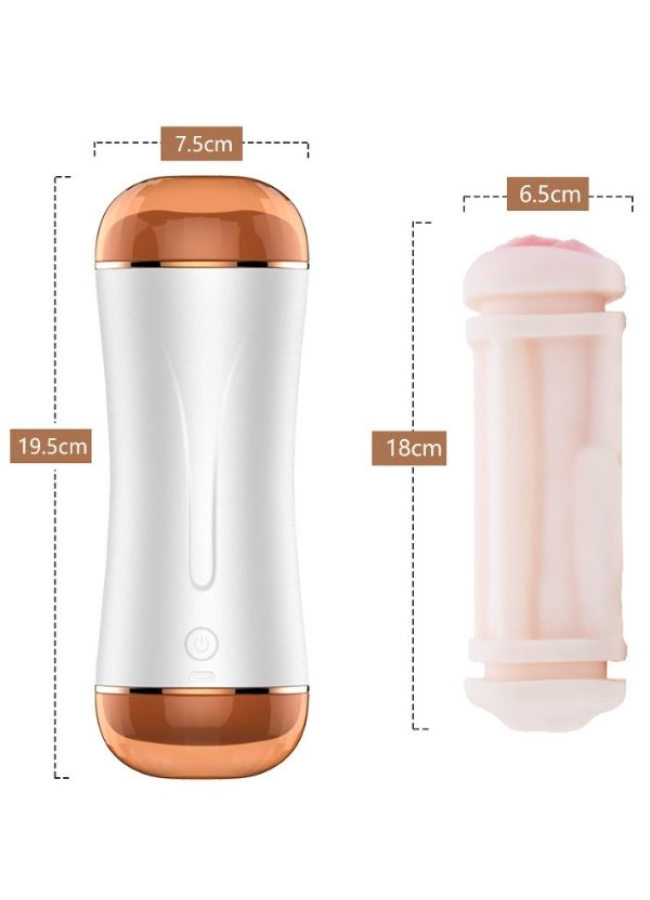 Bu çift taraflı şarjlı titreşimli mastürbatör, bir tarafta ağız, diğer tarafta vajina tasarımıyla tamamen gerçekçi ve yoğun bir deneyim sunar.Güçlü titreşim motoru, penisin tüm uzunluğu boyunca ayarlanabilir masaj sağlar ve 10 farklı titreşim modu ile her kullanımda farklı bir deneyim yaşatır.???? Etkileşimli Ses ve Hareket Sensörü:Mastürbatör, hız, titreşim türü ve aşk seslerini penisin hareketine göre ayarlayan sensöre sahiptir. Gerçekçi ses efektleriyle deneyimi daha canlı kılar.???? Malzeme:CyberSkin® (ABS/TPE dokulu tünel) malzeme sayesinde penisinize yoğun masaj yapacak çok sayıda çıkıntı bulunur. Ftalat ve latex içermez, cilt dostudur.???? USB Şarjlı ve Su Geçirmez:Mastürbatör USB ile kolayca şarj edilir ve su geçirmez yapısı sayesinde duşta veya banyo kullanımına uygundur.???? Kullanım:Düğmeye kısa bir basış cihazı açar ve 1 saniye titreştirip bekleme moduna geçer. Tekrar kısa basış ile ilk titreşim modu etkinleşir. Her kısa basış, 10 farklı titreşim modunu sırasıyla aktifleştirir.???? Ekstra Özellikler:Şarj bağlantısı kulaklık girişini de destekler.Kablolu kulaklık pakete dahildir.Ergonomik tasarım ile rahat kullanım sağlar.⚙️ Teknik Özellikler:Çift taraflı tasarım: Vajina & AğızMalzeme: CyberSkin® / ABS / TPETitreşim Modları: 10Su Geçirmez: EvetŞarj: USBSes ve hareket sensörü ile etkileşimli