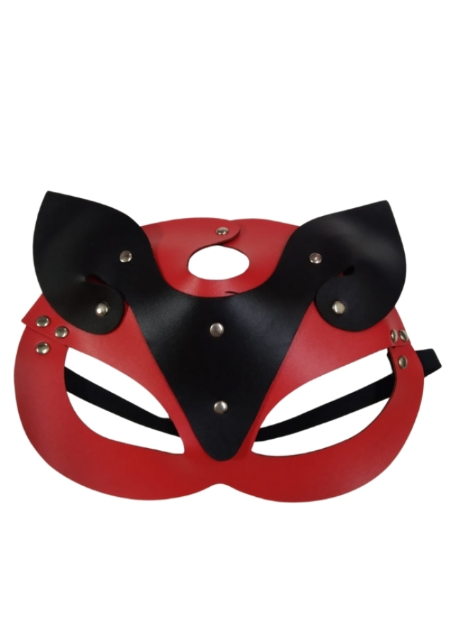 Censan Deri Kedi Kız Maskesi Kırmızı Siyah