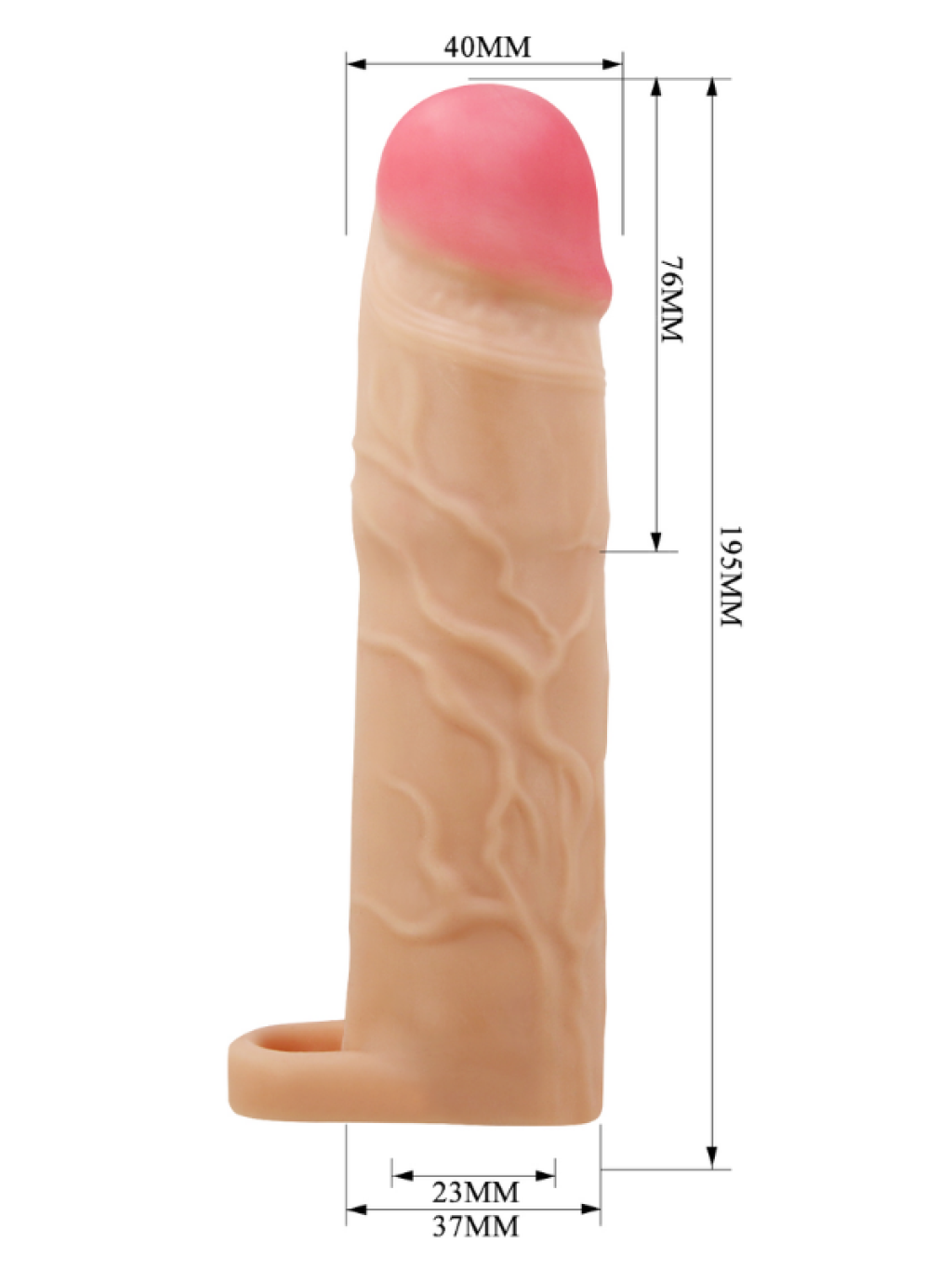 Zevk ve Performans İçin Penis Uzatıcı – 2 İnç Boy Uzatmalı, %35 Kalınlık ArtışıUltra gerçekçi materyalden üretilmiş bu penis uzatıcı kılıf, size doğal ve gerçekçi bir haz sunmak için tasarlanmıştır. Penisinizin boyunu yaklaşık 5 cm (2 inç) uzatırken, çevresini %35 oranında kalınlaştırır.Dış yüzeyi, gerçek damar detaylarıyla dokulu olup, kabarık baş kısmı partnerinizin doğal bir his yaşamasını sağlar. İç kısmındaki pürüzsüz kanal ise ereksiyon halindeki penisinizle sıkıca temas ederek maksimum uyarım ve rahatlık sunar.Özellikler:5 cm (2 inç) ekstra uzunluk%35 kalınlık artışıGerçekçi damar dokusu ve kabarık baş tasarımıPürüzsüz ve konforlu iç kanalUltra esnek ve cilt dostu malzemeKolay takılır ve temizlenir