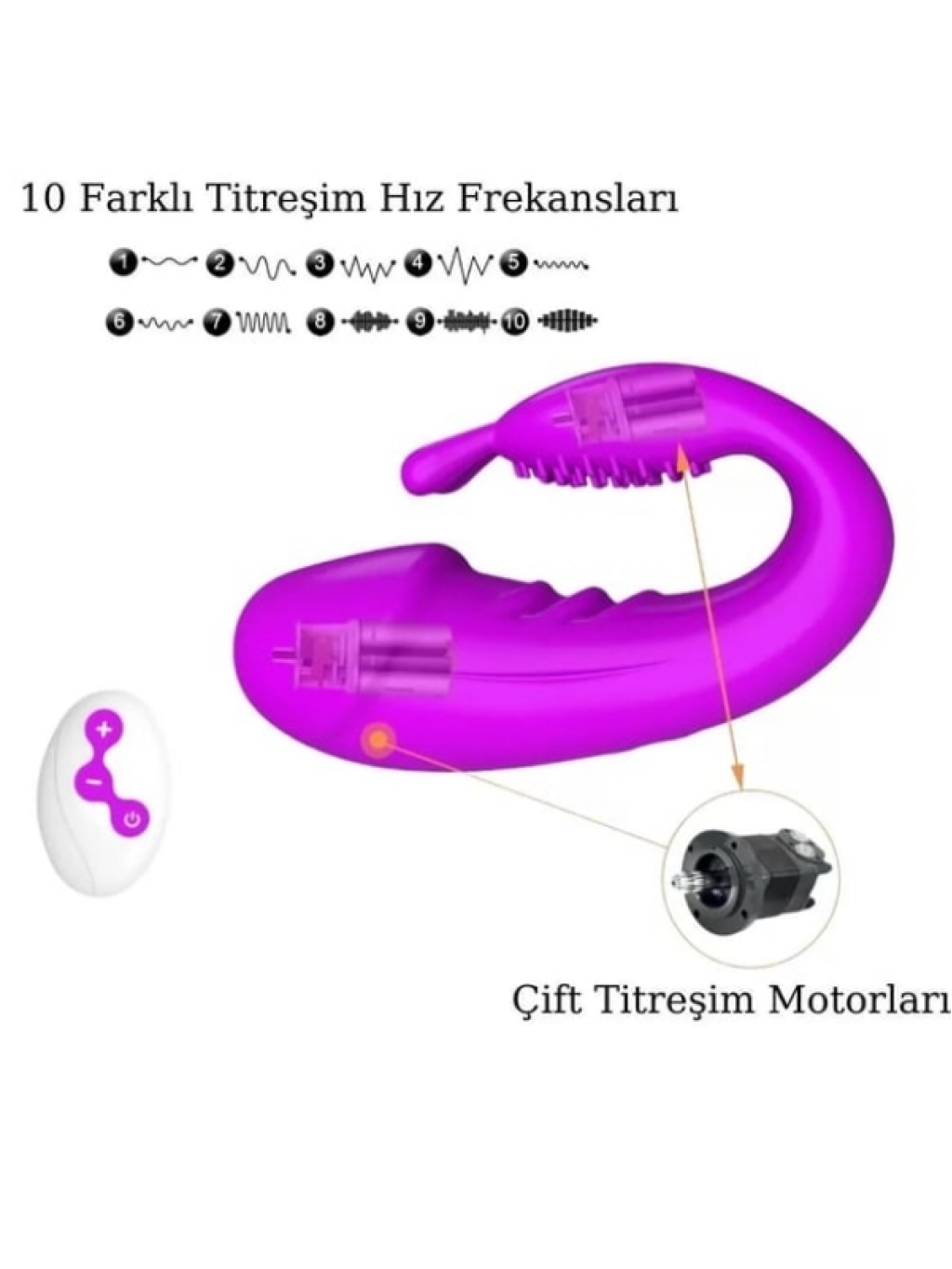 Censan Kablosuz 2 in 1 Giyilebilir Rabbit Mini Vibratör, yenilikçi tasarımı ve güçlü performansı ile hem günlük hayatta gizlice kullanılabilir hem de özel anlarda yoğun haz yaşatır.Tamamen sağlıklı, kokusuz, toksik olmayan ve cilt dostu tıbbi sınıf silikon ile ABS malzemeden üretilmiştir.İki ayrı ultra güçlü titreşim motoru, tek bir düğme veya 10 metreye kadar kablosuz uzaktan kumanda ile kontrol edilebilir.10 farklı titreşim modu, yavaş dalgalanmalardan güçlü titreşimlere kadar farklı zevk yoğunlukları sunar.Tırtıklı ve dalgalı yüzeyi, vajina içerisinde ekstra sürtünme yaratarak klitoris, labia ve vajina kanallarına eş zamanlı uyarım sağlar. Tavşan kulaklı uç kısmı, hassas bölgelerde yoğun bir masaj etkisi oluşturur.Ergonomik mini boyutu (10 cm uzunluk – 3.3 cm genişlik) sayesinde çantanızda veya bavulunuzda rahatlıkla taşınabilir.Giyilebilir yapısı sayesinde külot içine kolayca yerleştirilebilir ve günlük aktiviteler sırasında (örneğin iş toplantısı, akşam yemeği veya tatilde) gizlice kullanılabilir.IPX7 su geçirmez tasarımı, temizlikte ve suda kullanımda maksimum güvenlik sağlar.50 dB altında sessiz çalışma modu, çevrenizden fark edilmeden tamamen gizli bir deneyim yaşamanızı sağlar.USB şarjlı yapısı ile kolay, hızlı ve her ortamda şarj edilebilir.Öne Çıkan Özellikler:Tıbbi sınıf silikon + ABS malzeme10 farklı titreşim fonksiyonu2 güçlü motor, kablosuz uzaktan kumanda10 metreye kadar kontrol mesafesi180° bükülebilir yapı50 dB’den düşük sessiz çalışmaIPX7 su geçirmezlikUSB ile şarj edilebilirBoyut: 10 cm x 3.3 cmCensan 2 in 1 Rabbit Mini Vibratör – Gizli, güçlü ve her an yanınızda.