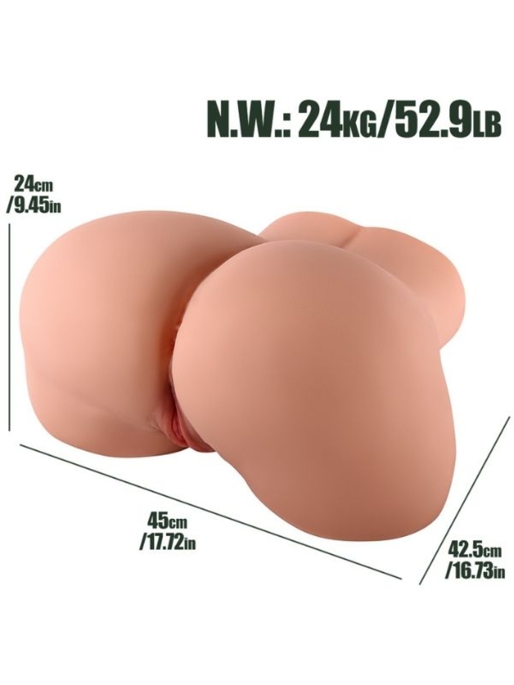 Ultra Realistik 24KG Doggy ve Misyoner Pozisyon Gerçekçi Kalça – Gerçekçi Cinsel Deneyim İçin TasarlandıUltra Realistik 24KG Doggy ve Misyoner Pozisyon Gerçekçi Kalça, hayalinizdeki cinsel deneyimi yaşamanız için özel olarak tasarlanmış bir mastürbatördür. Yüksek kaliteli malzemelerle üretilmiş, 24 kg ağırlığındaki gerçekçi kalça yapısı sayesinde hem misyoner hem de doggy pozisyonlarında kullanıma uygundur. Bu gerçekçi kalça, size doğrudan ve tatmin edici bir cinsel deneyim sunar.Özellikler:Gerçekçi Doku: Ultra gerçekçi et dokusu, doğal ve tatmin edici bir deneyim yaşamanız için özel olarak tasarlanmıştır.Ağırlık ve Stabilite: 24 kg ağırlığı, pozisyon değişikliklerinde dahi kalçanın güvenli ve sabit kalmasını sağlar.Çoklu Pozisyon Seçeneği: Hem misyoner hem de doggy pozisyonları için tasarlanmış kalça yapısı, farklı cinsel pozisyonların keyfini çıkarmayı mümkün kılar.Yüksek Kalite Silikon: Vücuda dost, toksik madde içermeyen silikon malzeme ile üretilmiş olup, güvenli ve sağlıklı bir deneyim sağlar.Kolay Temizlik: Su geçirmez yapısı sayesinde, kullanım sonrası temizlik işlemleri son derece kolaydır.Avantajları:Doğal His: Gerçekçi dokusu ve detayları ile hayalinizdeki cinsel deneyimi en doğal şekilde yaşamanızı sağlar.Dayanıklı ve Uzun Ömürlü: Yüksek kaliteli malzeme, uzun süreli kullanım için dayanıklı bir yapıya sahiptir.Ergonomik Tasarım: Kullanım sırasında rahatlık sağlayacak şekilde tasarlanmış ve pozisyon değişikliklerinde rahatlık sunar.Kullanım Talimatları:Kullanım öncesinde kayganlaştırıcı ile nemlendirin.İstediğiniz pozisyonda yerleştirerek kullanın ve keyfini çıkarın.Kullanım sonrası ürünü su ile temizleyerek hijyenik bir şekilde saklayın.Neden Bu Ürünü Tercih Etmelisiniz?Ultra Gerçekçi Deneyim: Gerçekçi kalça yapısıyla hayalinizdeki cinsel deneyimi yaşama fırsatı sunar.Stabil ve Güvenli Kullanım: 24 kg ağırlığı sayesinde, pozisyon değişikliklerinde güvenli ve sabit bir kullanım sağlar.Sağlıklı ve Güvenli: Vücuda zarar vermeyen, toksik madde içermeyen malzemelerle üretilmiştir.Ultra Realistik 24KG Doggy ve Misyoner Pozisyon Gerçekçi Kalça, gerçekçi görüntüsü ve kullanışlılığı ile cinsel arzularınızı tatmin etmenin en etkili yolunu sunar. 24 kg ağırlığında ve 24 cm * 45 cm * 42 cm boyutlarında olup, birebir gerçekçi boyutları ile her anınızda mükemmel bir deneyim sağlar.