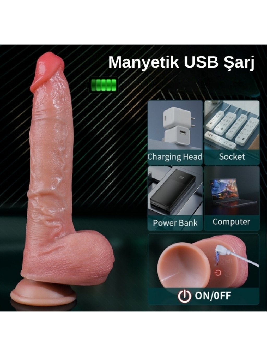 Ultra Realistik Isıtma İleri Geri ve Dönme Fonksiyonlu Gerçekçi Melez Vibratör, cinsel tatmini zirveye taşıyan ve her kullanıcı için özel bir deneyim sunan bir üründür. Gerçekçi dokusu, ısıtma fonksiyonu ve gelişmiş hareket özellikleri ile kendinizi kaybetmenizi sağlayacak bir tasarım.Özellikler:Ultra Gerçekçi Doku: Doğal et dokusuna en yakın malzemelerle üretilmiştir. Her kullanımla birlikte gerçek bir deneyim hissi yaratır.Isıtma Fonksiyonu: Vücut sıcaklığına yakın bir ısı sağlayarak daha gerçekçi ve tatmin edici bir deneyim sunar.İleri Geri ve Dönme Fonksiyonu: Kullanıcıyı saracak şekilde ileri geri hareket ve döngüsel döndürme özellikleri, gerçek bir penetrasyon hissi yaşatır.Melez Tasarım: Hem anal hem de vajinal kullanıma uygun tasarımı sayesinde, farklı deneyimler yaşamanızı sağlar.Avantajları:Gerçekçi Deneyim: Isıtma ve hareket fonksiyonları ile daha tatmin edici ve gerçekçi bir deneyim sunar.Çeşitli Titreşim Modları: Kullanıcıların farklı zevk tercihleri için ayarlanabilir titreşim seçenekleri.Kolay Temizlik: Su geçirmez yapısı sayesinde, temizlik işlemi son derece kolaydır. Kullanım sonrası sabun ve su ile temizleyebilirsiniz.Kullanım Talimatları:Şarj: Kullanım öncesinde cihazı tamamen şarj edin.Açma: Kontrol düğmesine basarak cihazı açın ve ısıtma fonksiyonunu etkinleştirin.Mod Seçimi: İleri geri ve dönme fonksiyonlarını etkinleştirin, ardından farklı titreşim modları arasında geçiş yaparak istediğiniz deneyimi elde edin.Temizlik: Kullanım sonrası, su ve sabun veya özel oyuncak temizleyici ile temizleyin.Neden Bu Vibratörü Tercih Etmelisiniz?En Üst Düzey Zevk: Gelişmiş fonksiyonları ile en üst düzey cinsel tatmin sağlar.Çiftler İçin İdeal: Partnerinizle birlikte kullanarak ortak anlarınızı zenginleştirin.Teknolojik Üstünlük: Isıtma, ileri geri hareket ve dönme fonksiyonları ile modern teknolojinin tüm avantajlarını deneyimleyin.Ultra Realistik Isıtma İleri Geri ve Dönme Fonksiyonlu Gerçekçi Melez Vibratör, cinsel yaşamınıza heyecan katmak ve zevkinizi artırmak için mükemmel bir seçimdir. Hemen sahip olun ve bu eşsiz deneyimi yaşayın!