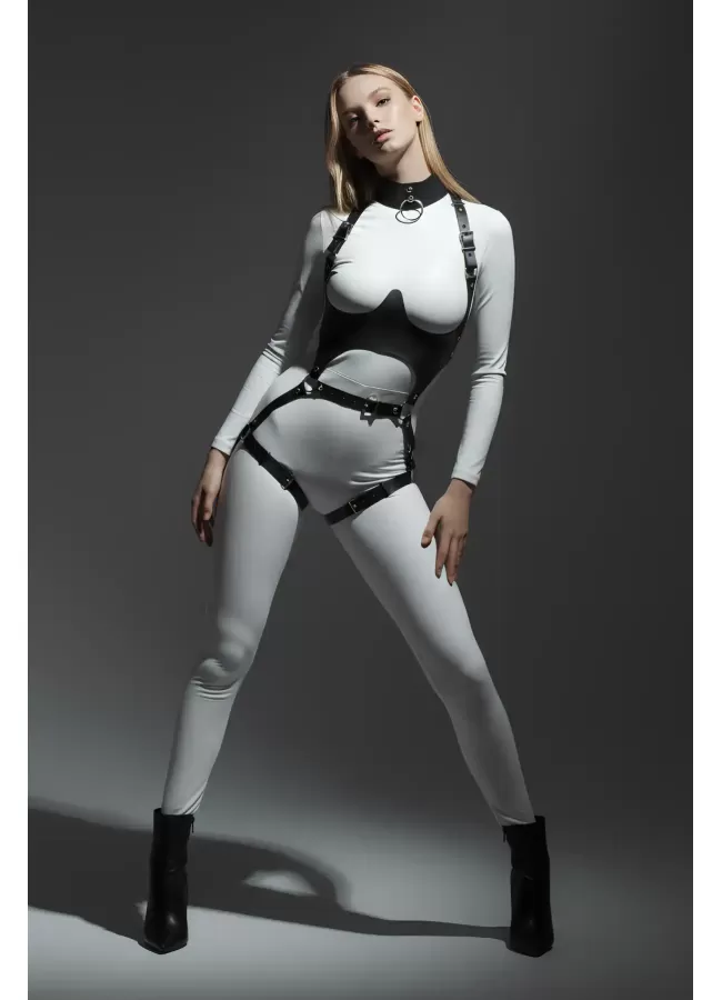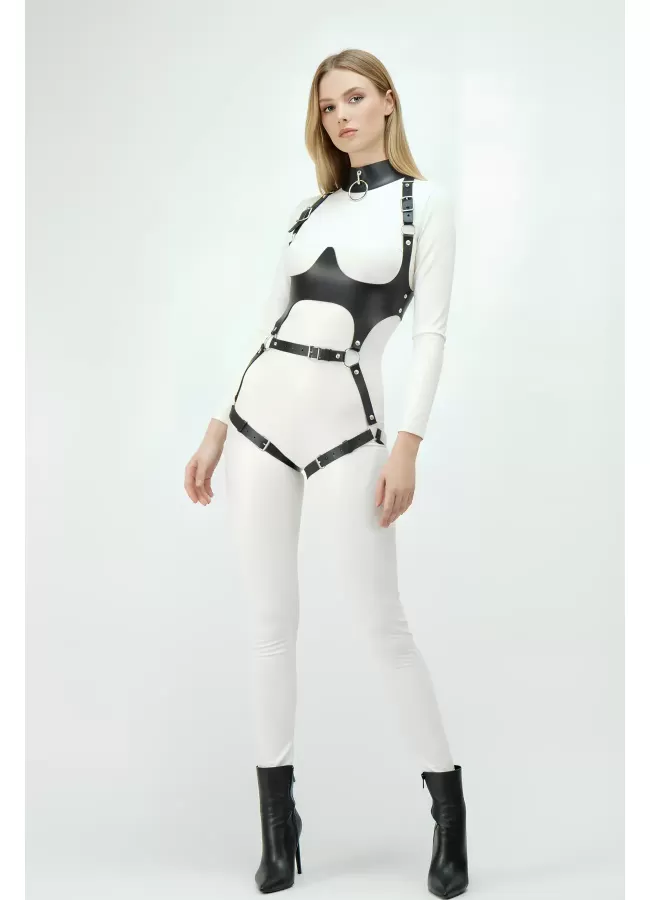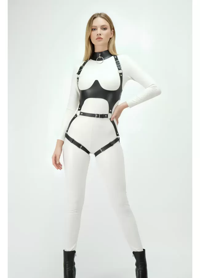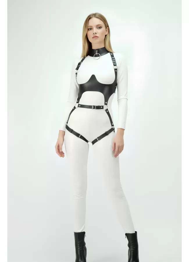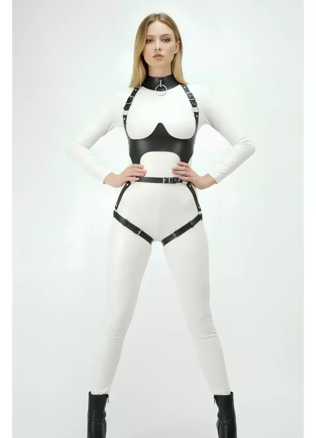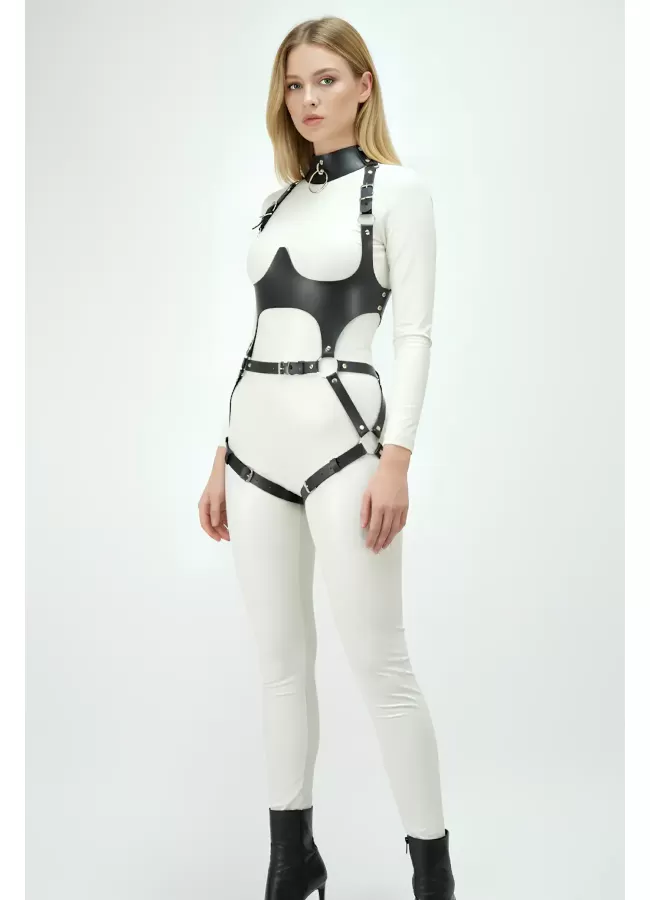 Deri Harness, Göğüs Altı Destekli Harness Takım, Deri Dansçı Kostüm - APFT1402