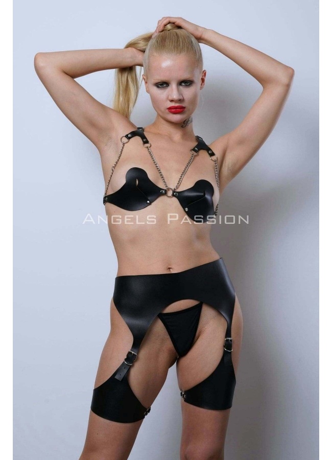 Deri Jartiyer Harness Takım Kadın Fantezi İç Giyim