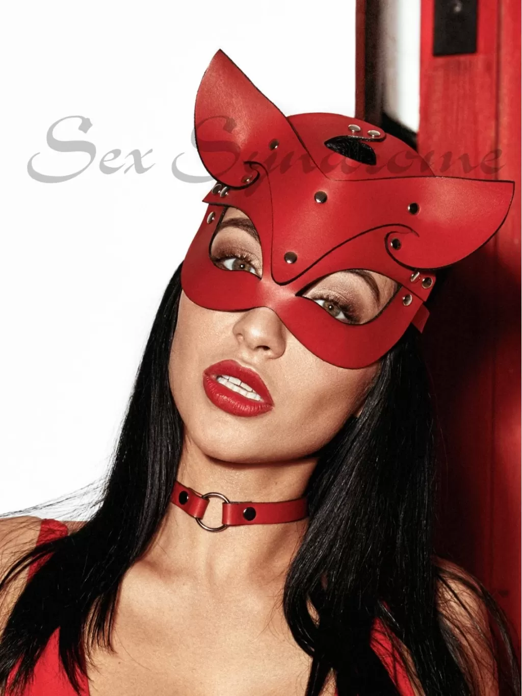 Fantezi maske, tasma ve kelepçeden oluşmaktadır. Deri yüzey sayesinde uzun yıllar kullanma olanağı sağlamaktadır.