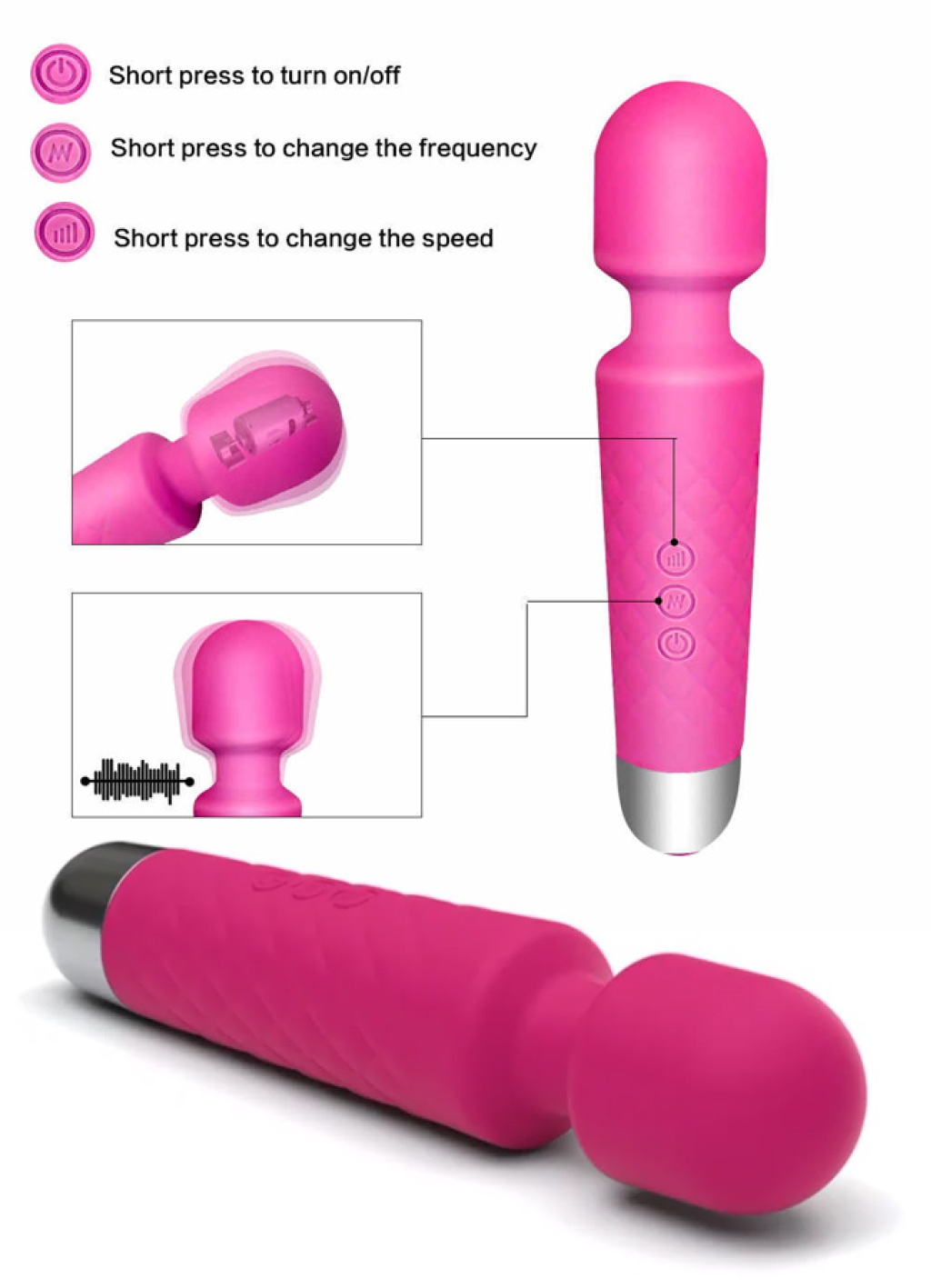3 saatlik kullanım sunan çoklu titreşim uyarıcı, sessiz titreşimli ve 7 farklı fonksiyondan oluşur.