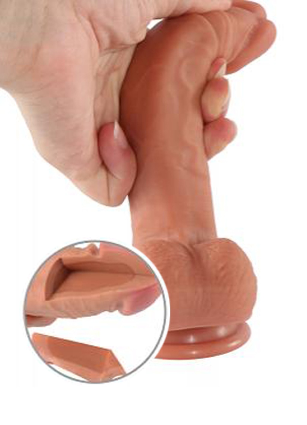 Gerçek erkek modellerden birebir kalıp alınarak tasarlanmış olan bu oyuncak, insan tenine son derece yakın tıbbi silikondan üretilmiştir.
