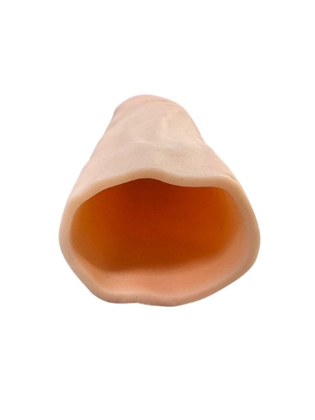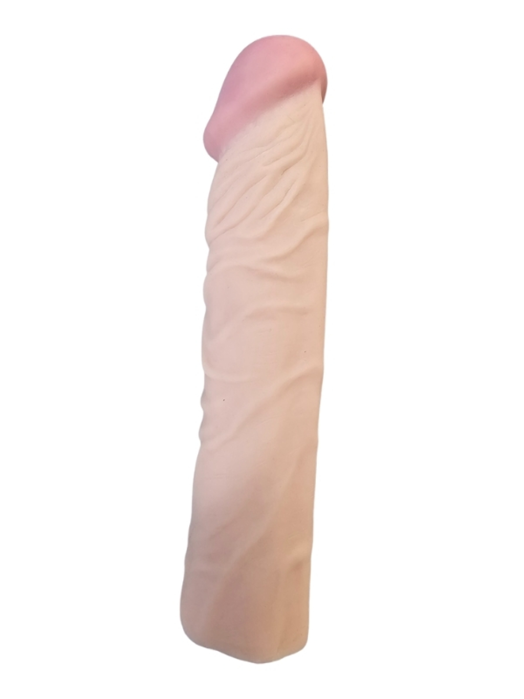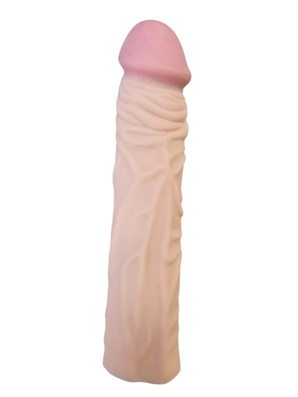 Gerçekçi Penis Kılıfı – 19 cm Uzunluk, 5 cm Kafa Dolgusu, Ekstra KalınlıkToplam 19 cm boyunda olan bu özel penis kılıfı, ön kısmında bulunan 5 cm’lik yoğun kafa dolgusu ile partnerinize güçlü ve derin bir temas sağlar. Yarım santim kalınlaştırıcı yapısıyla etkili bir dolgunluk sunarken, gerçek hissi aratmayan et dokusu sayesinde hem siz hem partneriniz için zevk verici bir deneyim yaşatır.Prezarvatif mantığıyla kolayca penise takılır, erken boşalmayı önleyerek daha uzun süreli performans sağlar. Uzun gelen kısmı isteğe göre kesilebilir ve bu sayede boyu kişisel tercihe göre ayarlanabilir.Yıkanabilir ve tekrar kullanılabilir yapısı sayesinde hem hijyenik hem de pratik bir kullanım sunar. Uzatma, kalınlaştırma ve kontrolü bir arada isteyenler için ideal bir tercihtir.