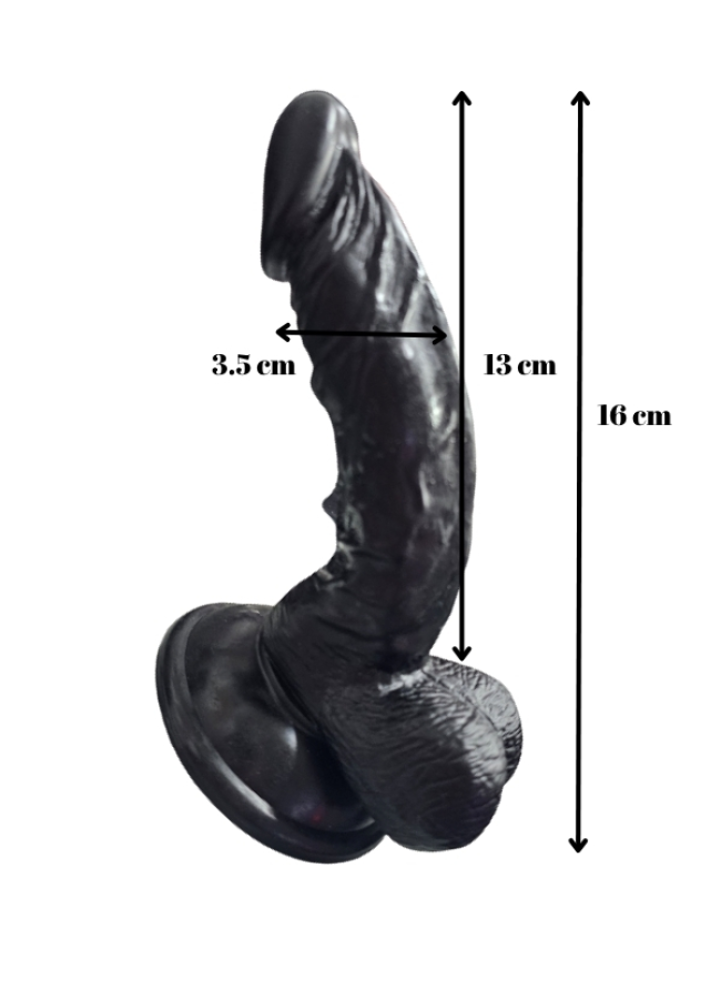 Gerçekçi Testisli Siyah Dildo 16 cm