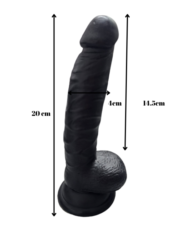 Gerçekçi Testisli Siyah Dildo 20 cm