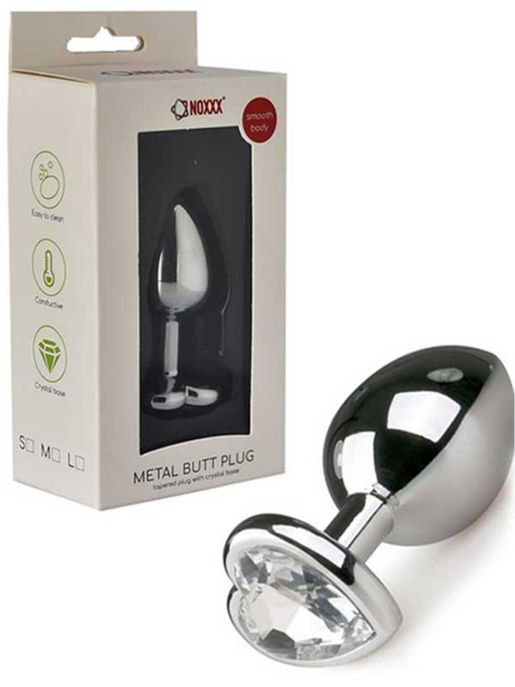 NOXXX Kalp Mücevherli Çelik Anal Plug Küçük BoyAlt kısmı mücevher renkli kristal taşla süslü, 7 cm uzunluğunda çelik anal plug.Kaliteli paslanmaz çelik ve renkli kristal taşlardan üretilmişitir.Plug taşları karışık renktedir.Uzunluk: 7 cmÇap: 2.7 cmKullanılabilir Uzunluk: 6.5 cmAğırlık: 80 gr