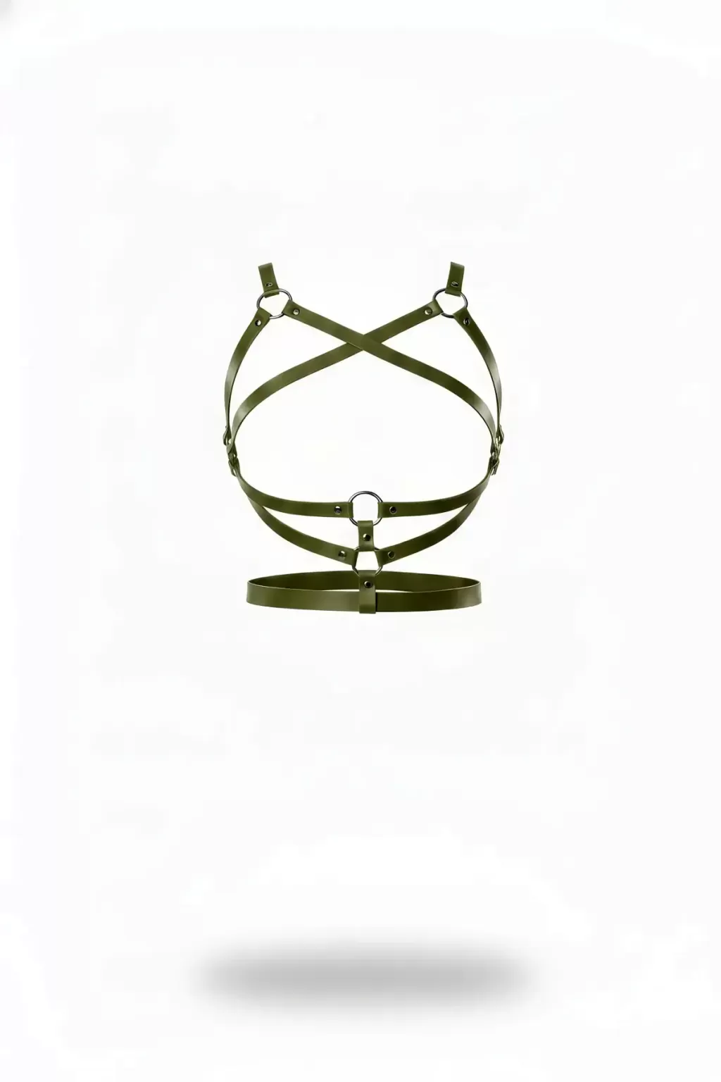 Haki Kadın Kemer Çapraz Bağlamalı Metal Halkalı Vücut Aksesuarı - APFT991