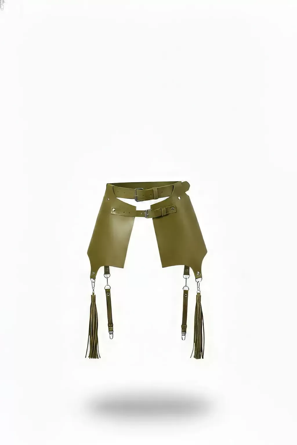Haki Kadın Kemer Deri Panelli Püskül Detaylı Bel Aksesuarı - APFT985