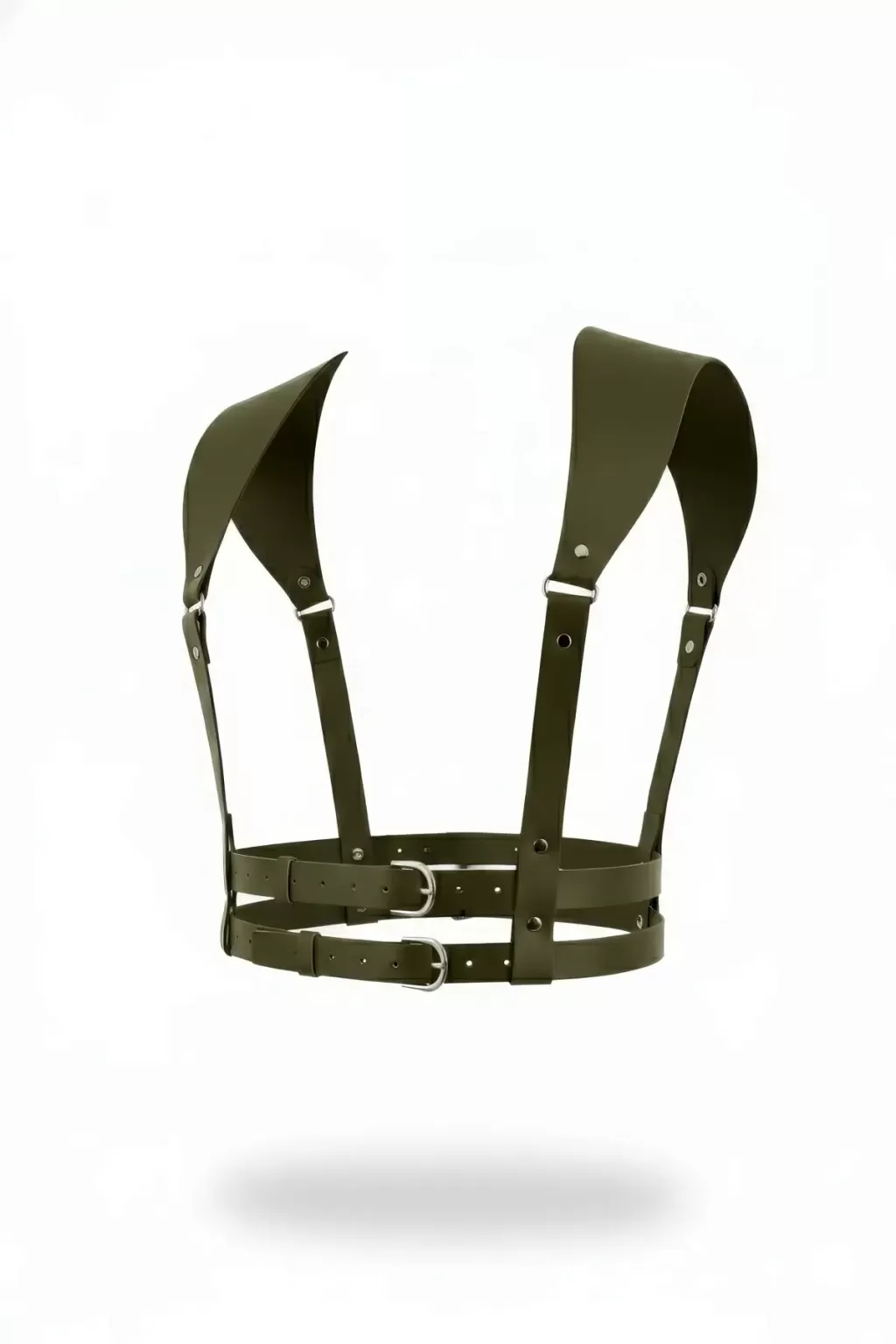 Haki Kadın Kemer Omuz Detaylı Suni Deri Vücut Aksesuarı - APFT966
