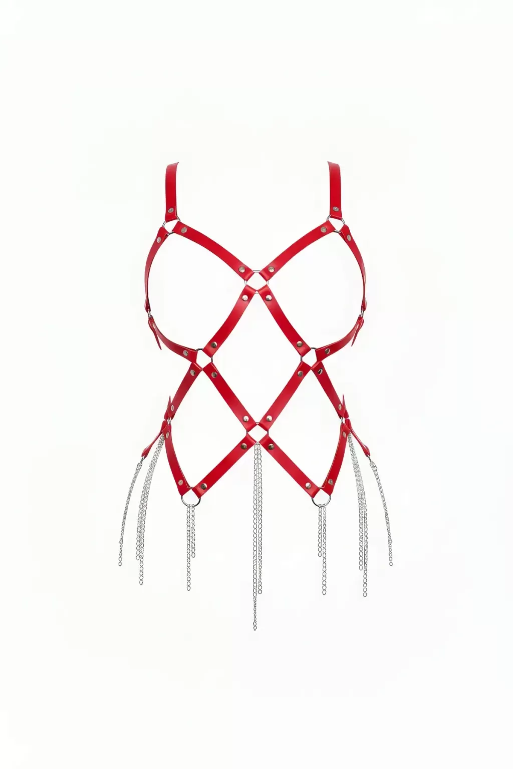 Kırmızı Body Harness Suni Deri Zincir Püskül Detaylı - APFT950