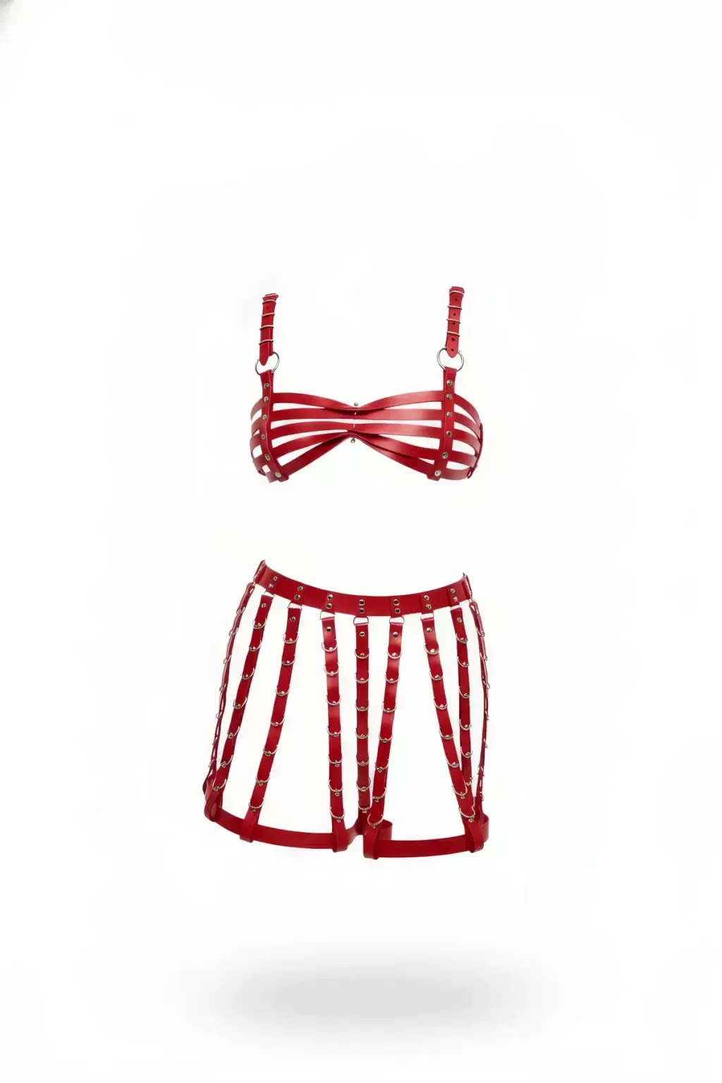 Kırmızı Etek Suni Deri Etek Çok Bantlı Mini Etek - APFT899