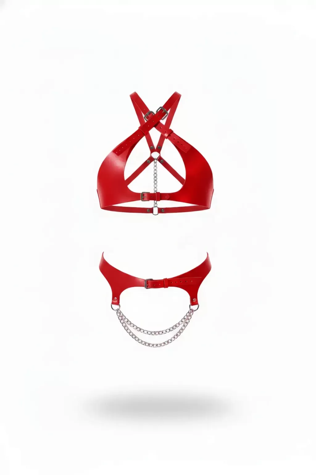 Kırmızı Tasarım Tasmalı Deri Jartiyer Takım