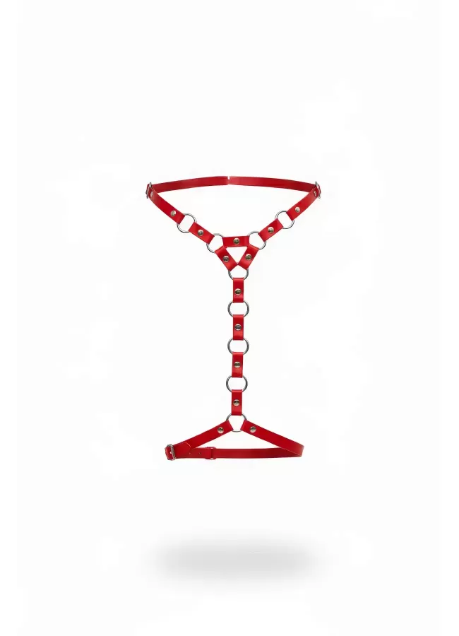 Kırmızı Jartiyer Harness Suni Deri Metal Halkalı - APFT973
