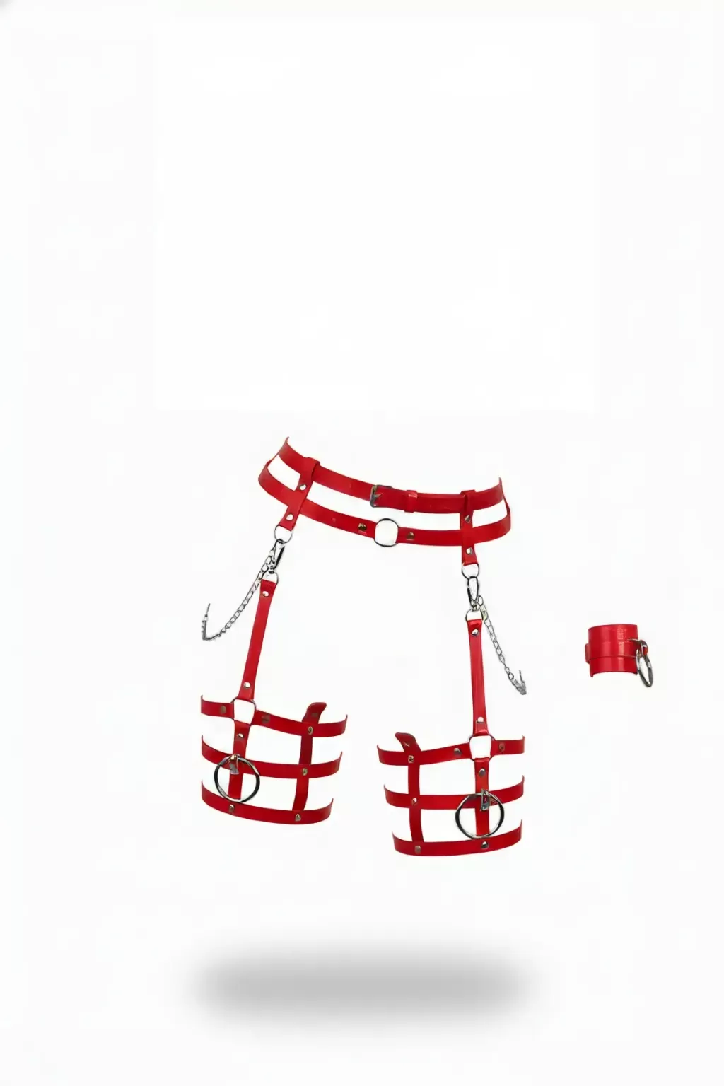 Kırmızı Tasarım Tasmalı Deri Jartiyer Takım