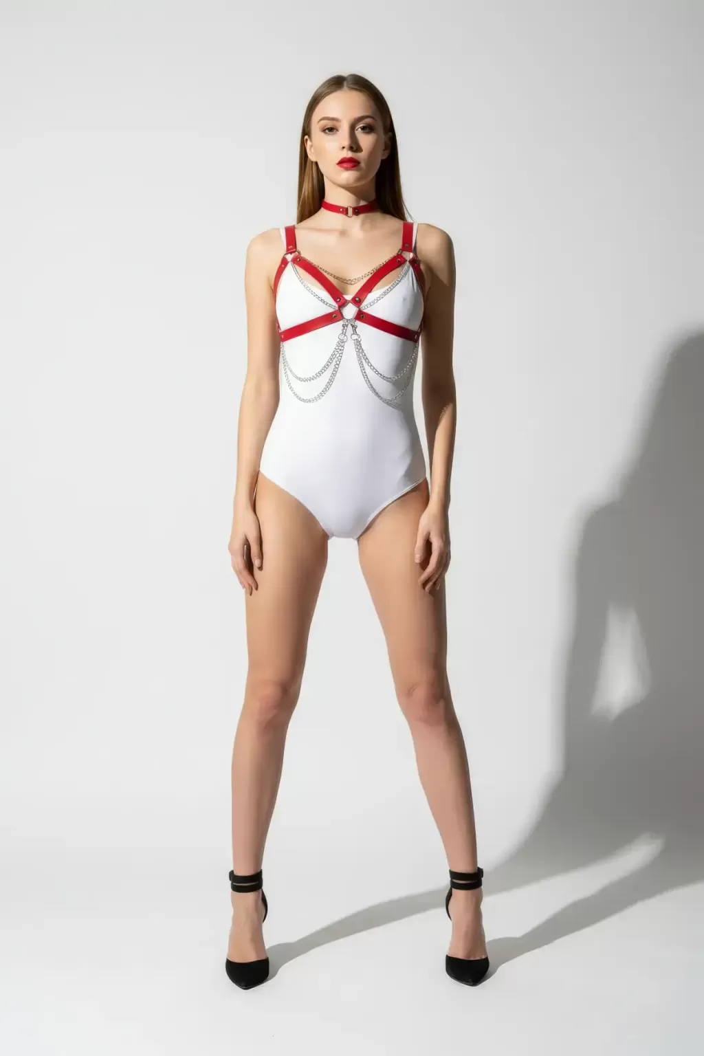 Kırmızı Kadın Kemer Çapraz Bağlamalı Zincirli Vücut Kemeri - APFT952