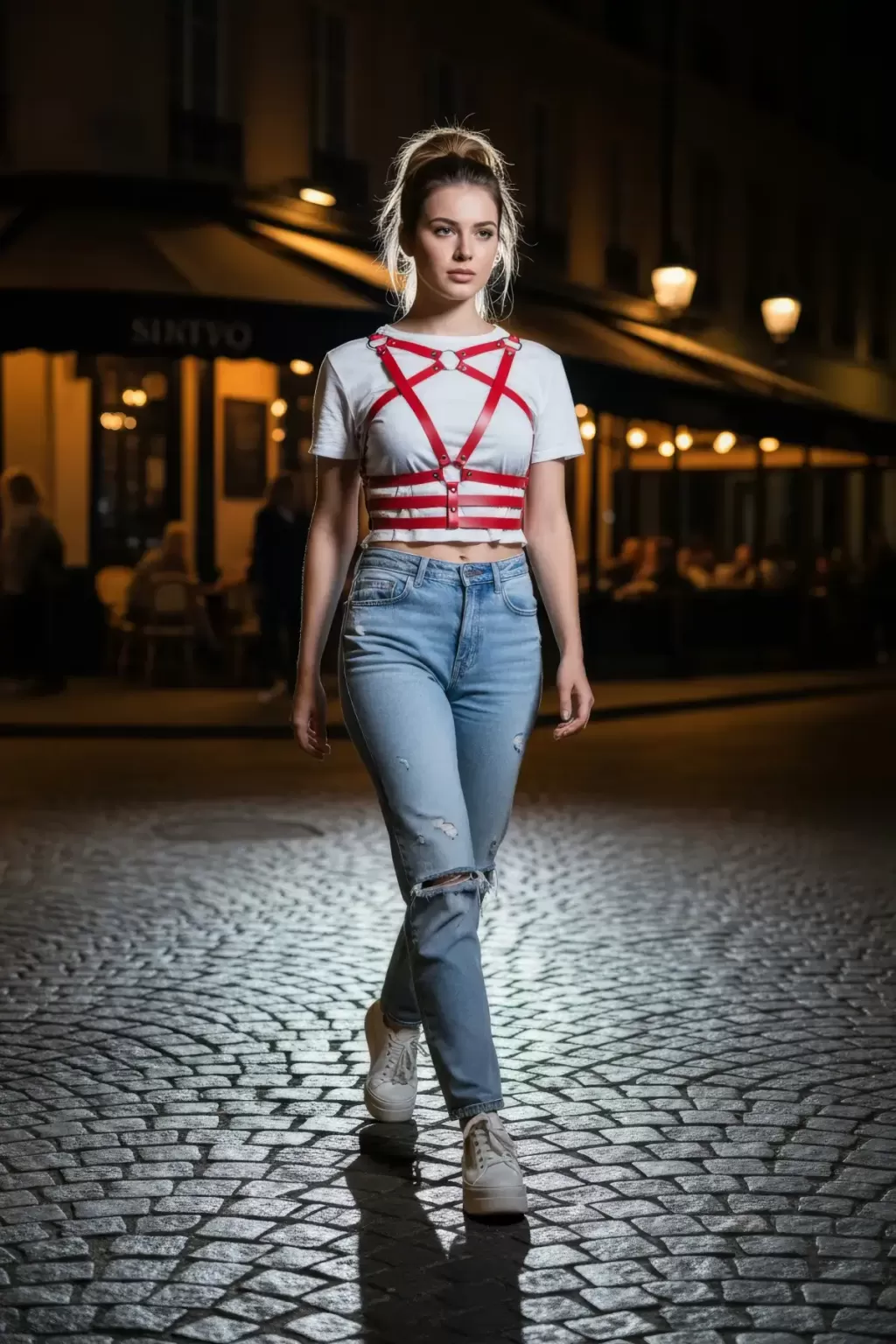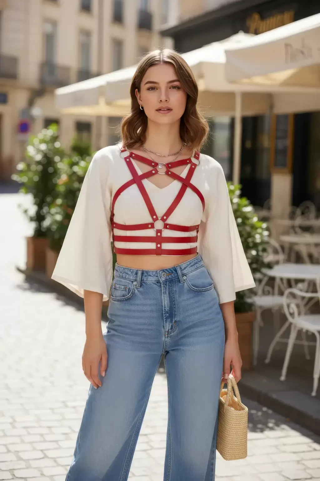 Kırmızı Kadın Kemer Çoklu Şeritli Metal Halka Detaylı Vücut Aksesuarı - APFT955