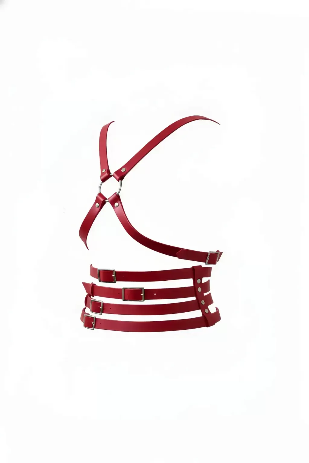 Kırmızı Kadın Kemer Kalın Bantlı Metal Tokalı Vücut Aksesuarı - APFT911