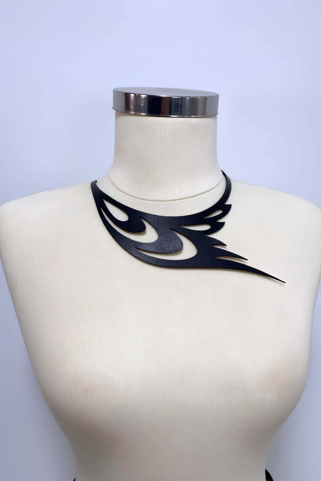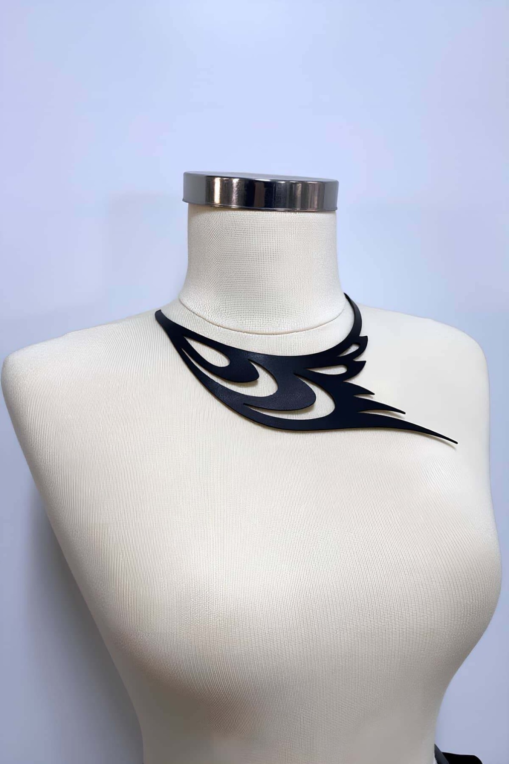 Kuş Kanadı ve Göz Detaylı Şık Deri Choker, Deri Kolye - APFT1414