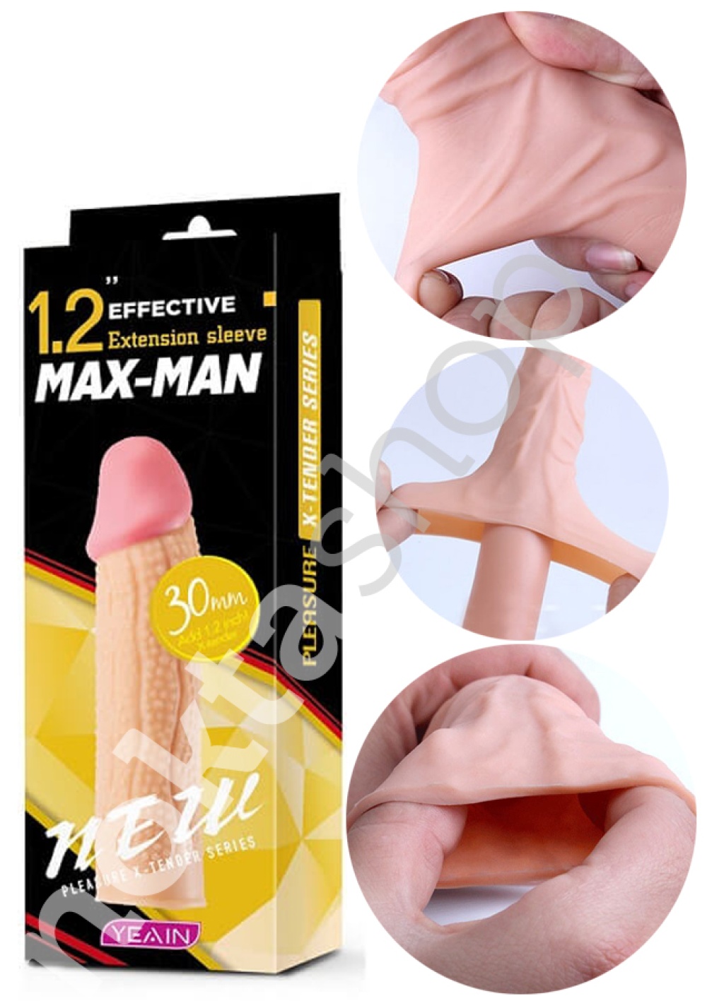 Max Man Dolgulu Tırtıklı Penis Kılıfı 16.5 cmGerçekçi et dokusunda ve gerçekçi görünüme sahip, iç dolgusu sayesinde uzunluk ekleyen, tırtıklı yapısı sayesinde daha fazla uyarım sağlayan penis kılıfı elastiktir ve tüm boylara uyum sağlar. Su ile kolay temizlenir ve hijyenik kullanıma imkan verir.Penis boyunuza 3 cm ekler, %30 oranında genişletir. Uzunluğu 16.5 cm, iç genişliği 3.5 cm, iç derinliği 13.5 cm'dir. 90 gr ağırlığındadır.