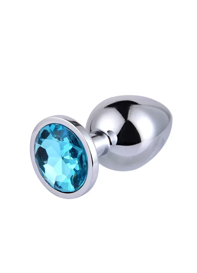 Alt kısmı mücevher renkli kristal taşla süslü, 9 cm uzunluğunda çelik anal plug.