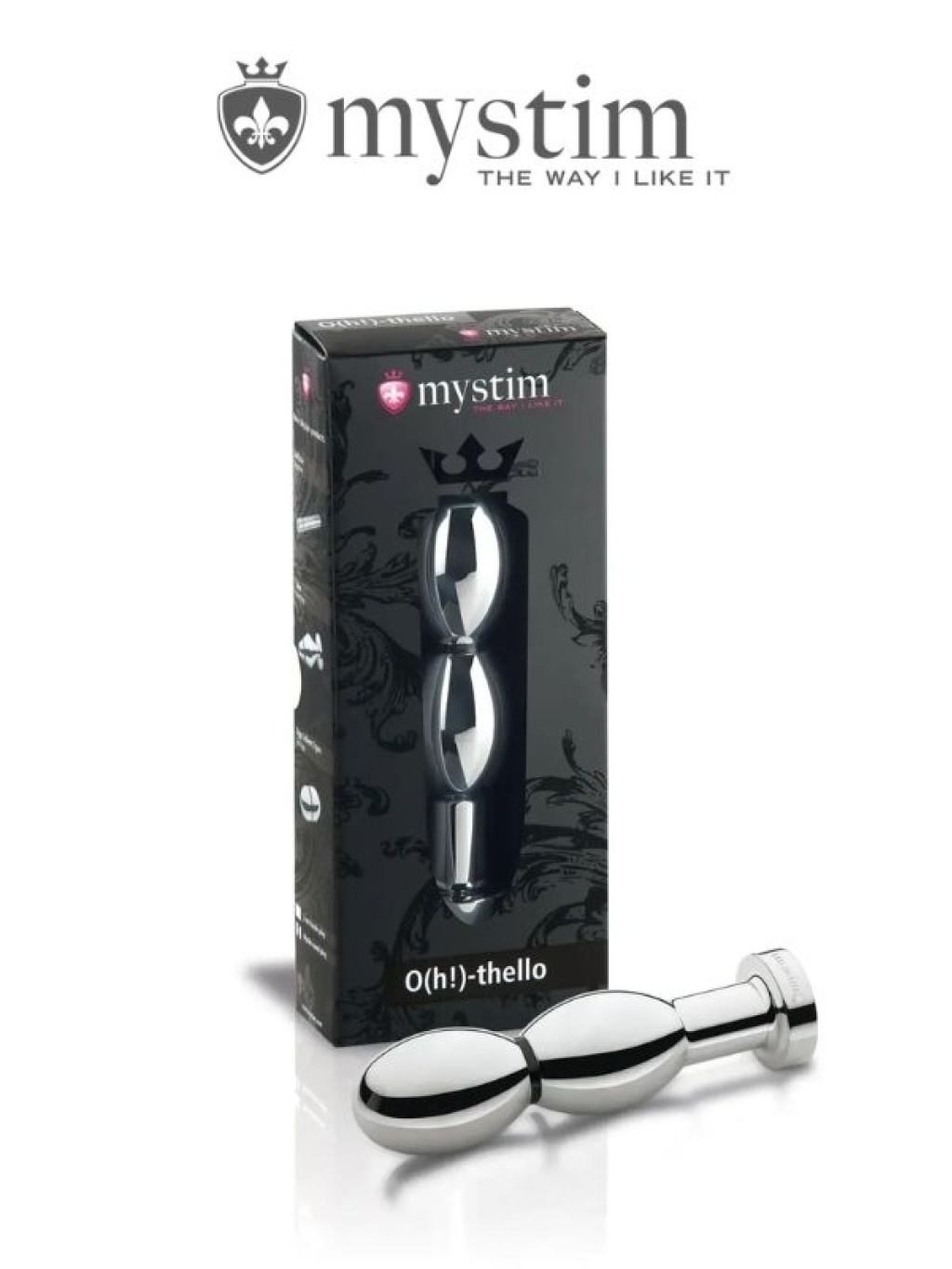 Mystim, iki oval parçadan oluşan anal-vajinal bir yapay penistir. Elektrik stimülasyonu sayesinde hafif karıncalanma, ritmik zonklama veya yeterince güçlü titreme hissedebilirsiniz. Elektrotlar oyuncağın ucundan sadece birkaç santim uzakta. O(h!)-thello cerrahi çelikten yapılmıştır ve elle cilalanmıştır. Metalik performans, dürtüleri daha parlak hissetmenizi ve oyuncağın sıcaklığıyla oynamanızı sağlayacaktır. Onu soğutabilir veya önceden ısıtabilirsiniz - O(h!)-thello, sıcaklığı mümkün olduğunca uzun süre koruyacak şekilde tasarlanmıştır. NOT: Mystim fonksiyonu sadece Tension Lover veya Cluster Buster baz ünitesinde çalışır (ayrıca satılır) Kullanmadan önce talimatları dikkatlice okuyun!Tür: E-stim yapay penis Uzunluk 14cm Çap 3,5 cm Ağırlık 310g Kutup 2 (çift kutuplu) Renk: metalik Elle parlatılmış tıbbi alüminyumdan yapılmıştır Elektrikli stimülasyon cihazı gerekli