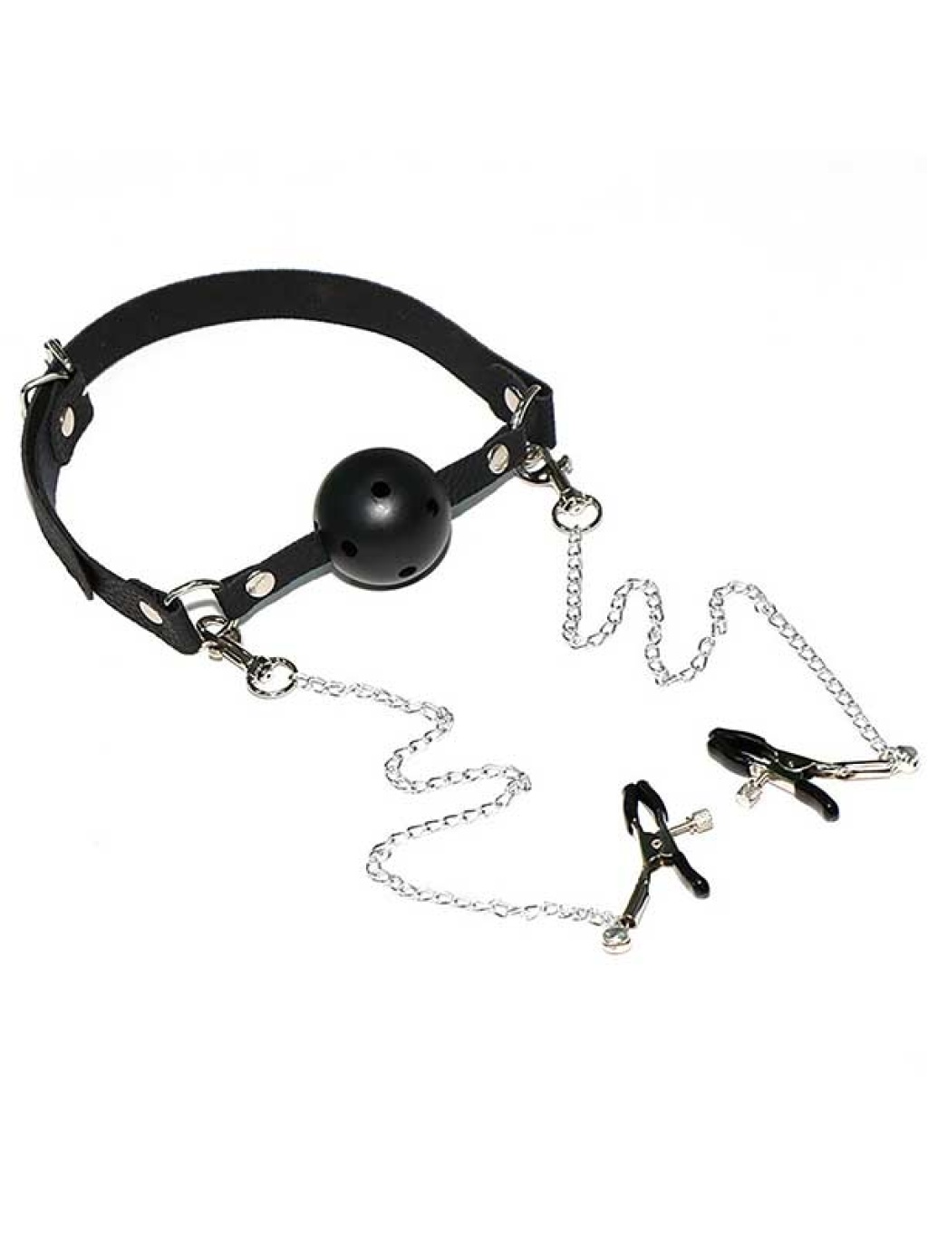NOXXX Ağız Topu ve Göğüs KlipsiAğız topunun delikli yapısı sayesinde kolaylıkla nefes alınabilir. 4.4 cm genişliğindedir.Kemer sayesinde her kafaya rahatlıkla uyum sağlar.Göğüs klipslerinin ucu yumuşak siyah silikon ile kaplıdır.