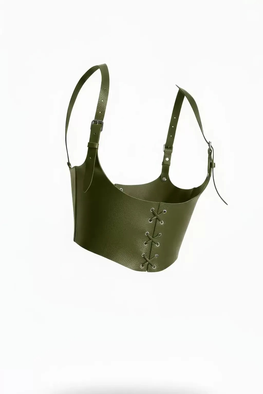 Omuzdan Askılı Haki Korse Kadın Kemer, Haki Kadın Deri Kemer - APFT1428