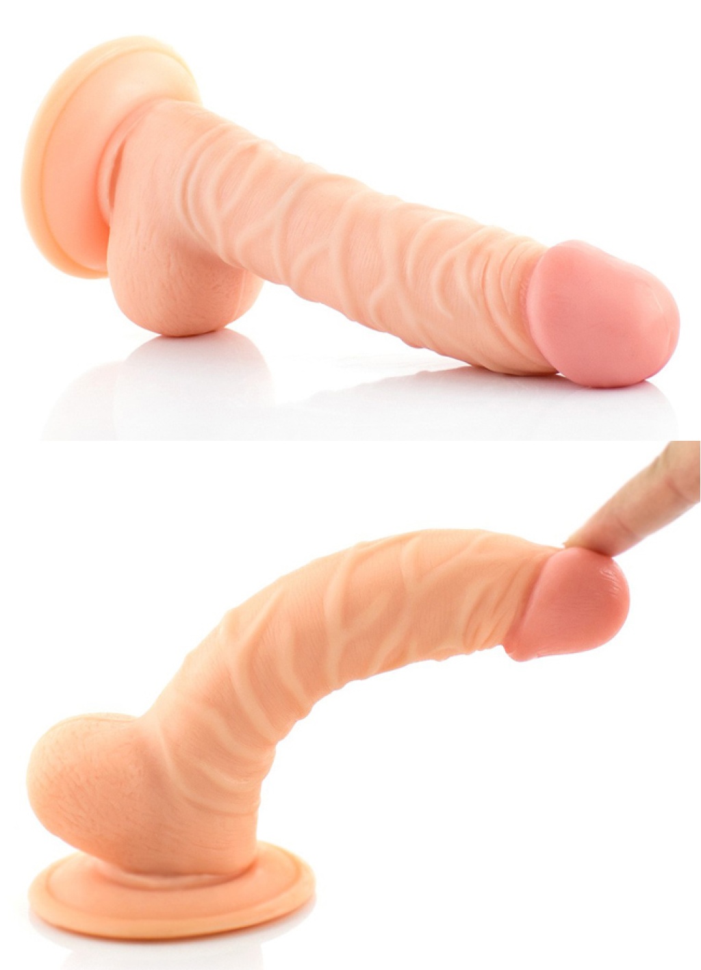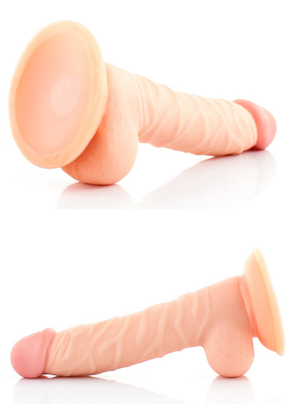 Iki katmandan olusan çift dokulu, en üst düzeyde gerçeklik hissi saglayacak, devrimsel nitelikte yepyeni malzemeden üretilmis, vantuzlu, renklendirilmis damarli, 20 cm dildo.