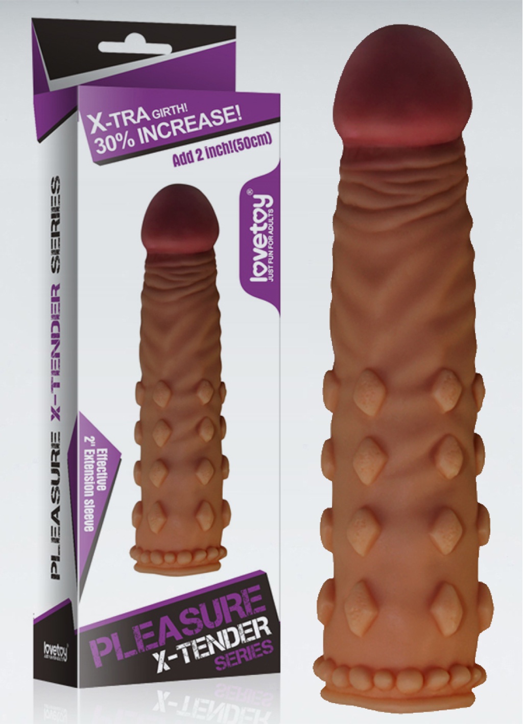 Super-Realistic Penis Extension Sleeve *For an increase of 2 inch in length and 30% in girth *Realistic head and veiny shaft enhances sensation for receiver *Made from temperature responsive real-feel material *Total length 7.5 inch *Internal Length: 5.5 inches *Canal diameter: 1.2
