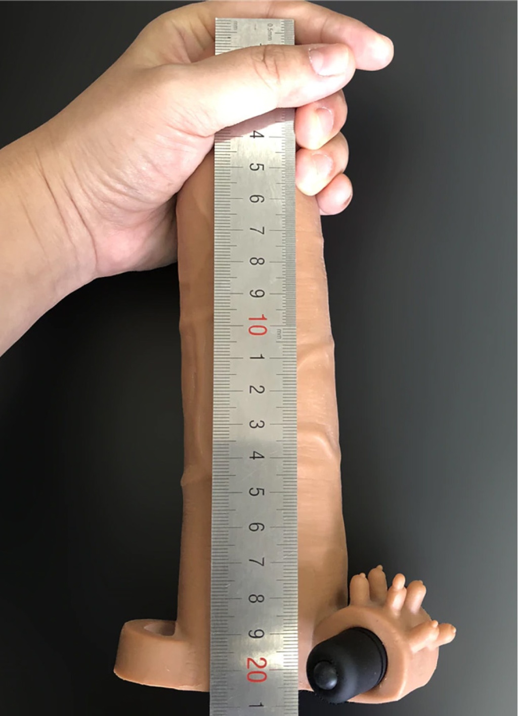 Realistik Titreşimli Uzatmalı Penis Kılıfı Esmer